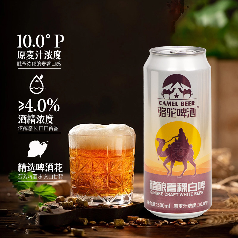 📚 【骆驼啤酒官方正品】500ml*6听10°P青稞啤酒精酿白啤【新日期】