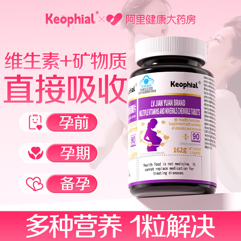 📚 Keophial女生成人维生素d3VC钙片非叶酸孕妇备孕孕期复合多种多维