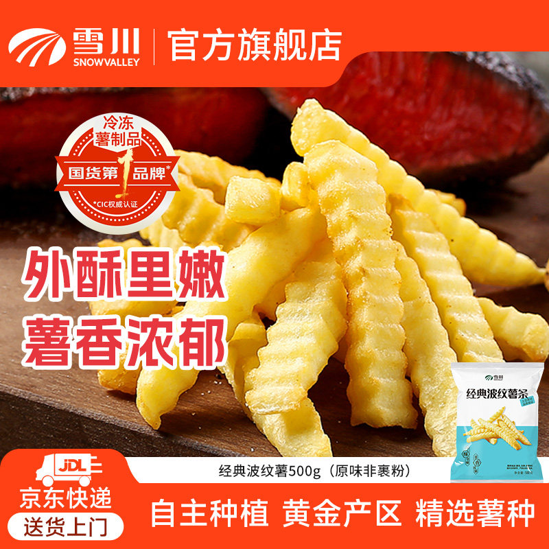 📚 雪川波纹薯原味曲薯条500g冷冻半成品粗薯细薯条空气炸锅油炸食材
