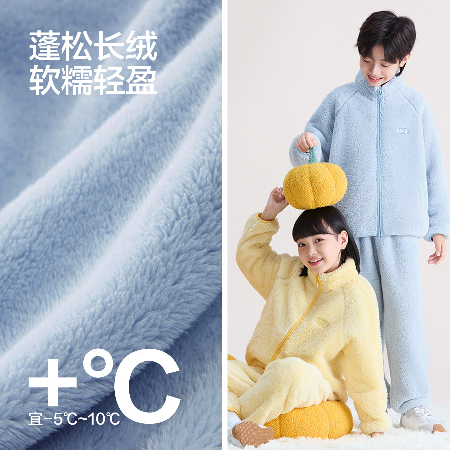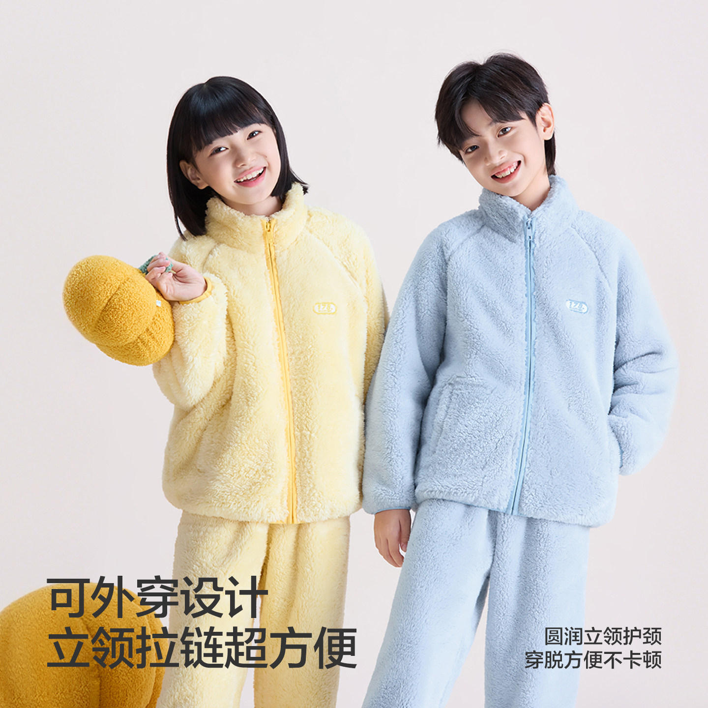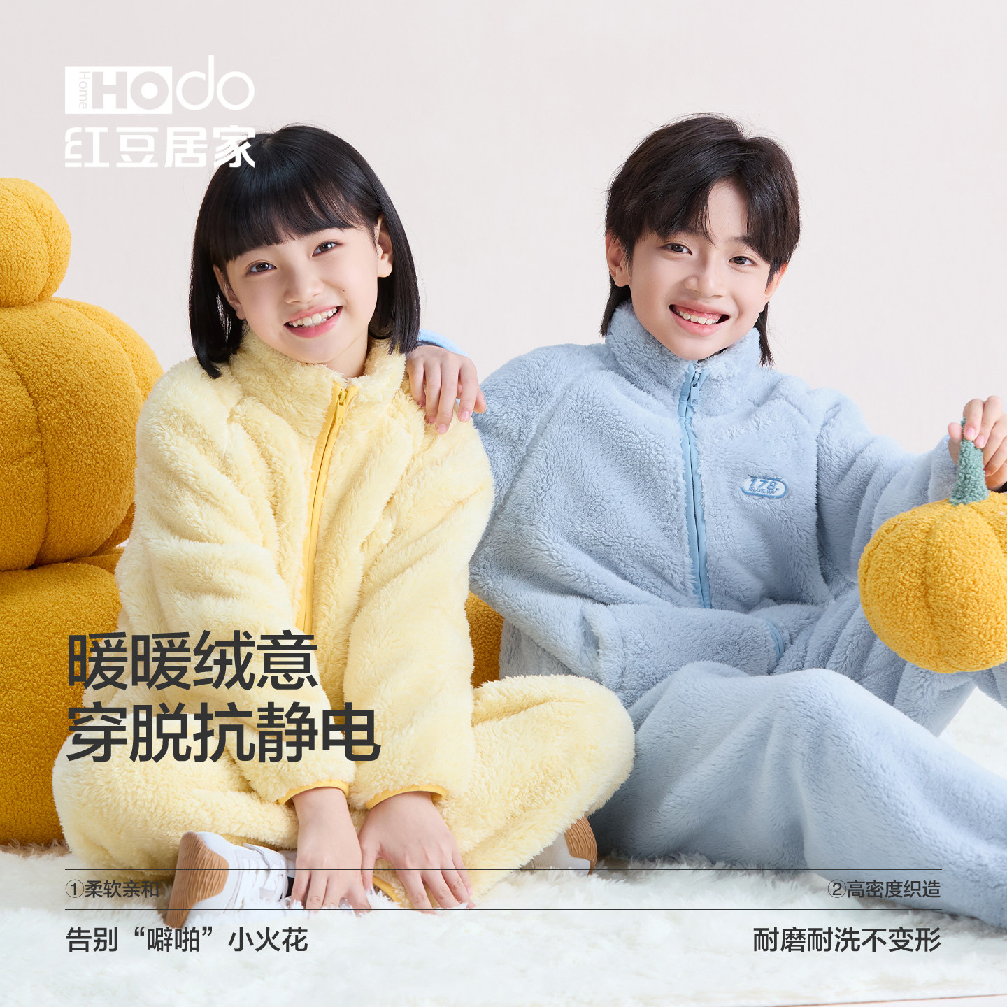 📚 红豆儿童珊瑚绒睡衣男女童秋冬家居服拉链运动可外穿加厚保暖套装