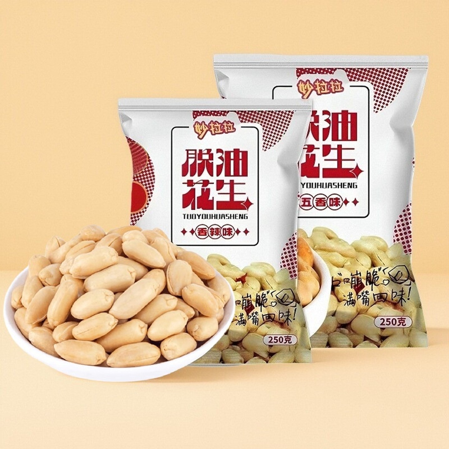 📚 新鲜脱油脱脂花生米五香味酒鬼花生去壳脱油花生米下酒菜休闲零食