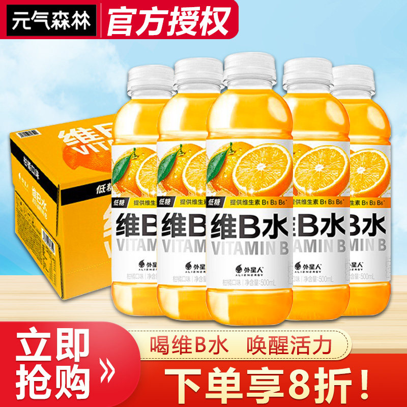 📚 外星人维生素水低糖维B水柑橘味500ml*15瓶整箱维生素B族饮料新品