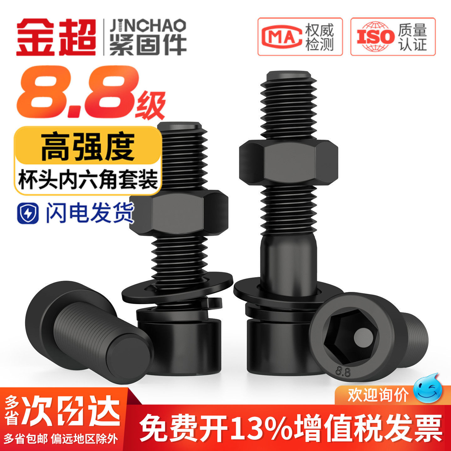 📚 黑色杯头8.8级内六角螺栓螺丝加螺母套装大全碳钢M4M5M6M8M10M12
