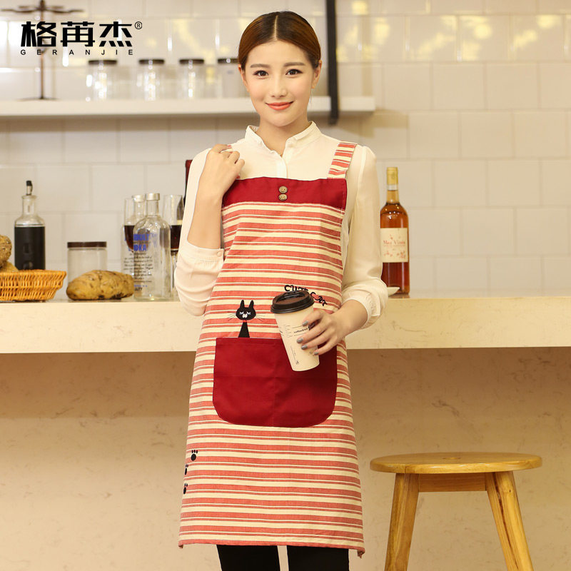 📚 韩版时尚纯棉条纹防油幼教园美甲餐厅母婴馆员工作服家居围裙包邮