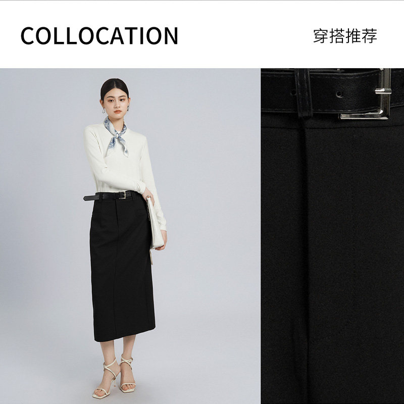 📚 IVYKKI艾维2025年春夏新款时尚半身裙女气质开叉直筒裙中长款裙子