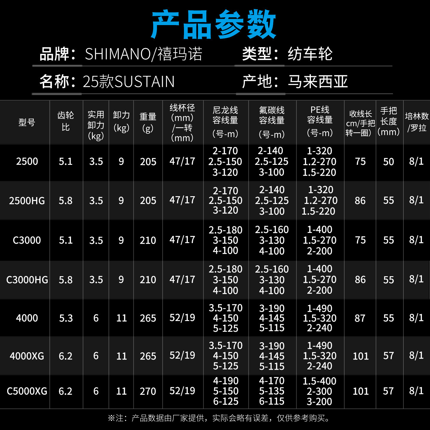 📚 SHIMANO禧玛诺 纺车轮 25新款SUSTAIN 轻量远投路亚轮进口鱼线轮