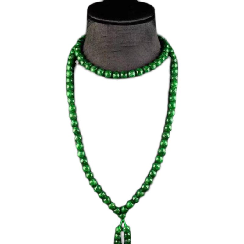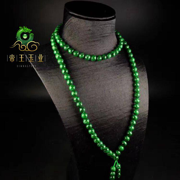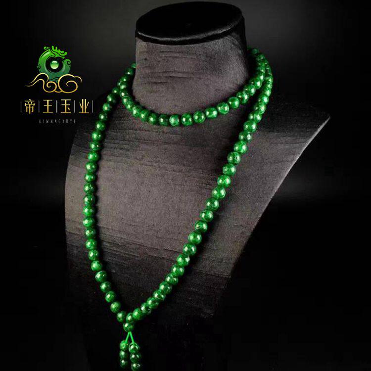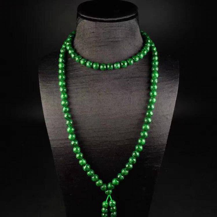 📚 天然祖母绿翡翠项链缅甸老坑A货满绿毛衣链玉石男女款圆珠珠链