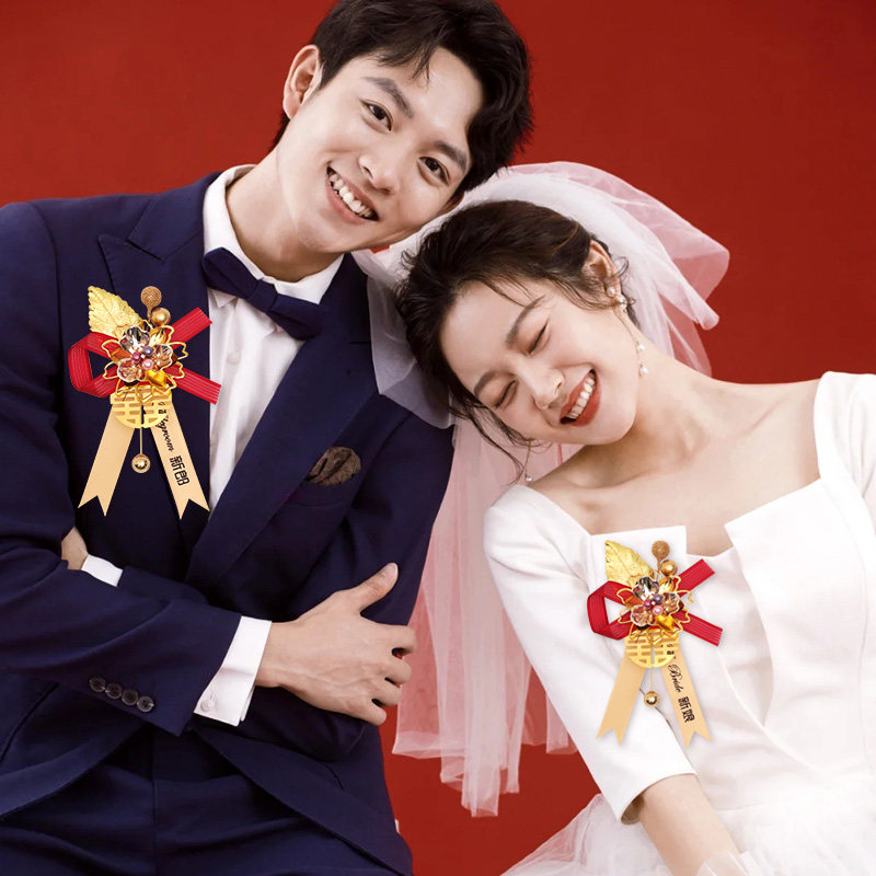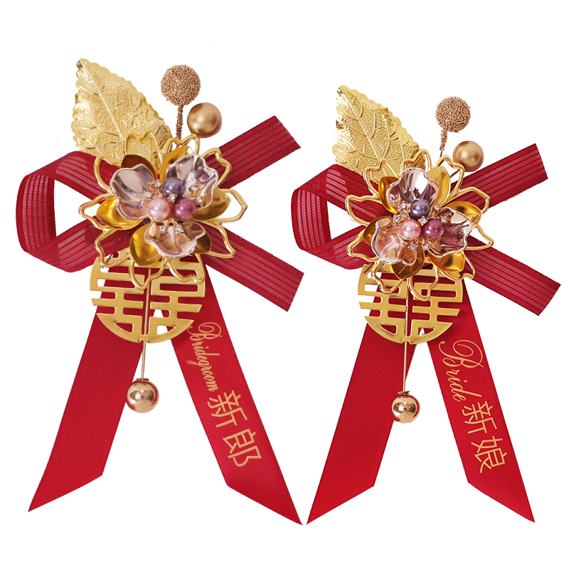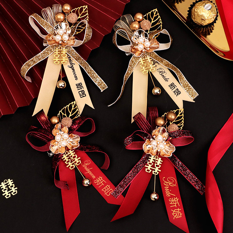 📚 结婚用胸花新郎新娘父母亲别花全套婚庆中式家人婚礼胸针襟花一套