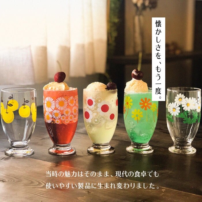 📚 限定款日本aderia石冢硝子昭和复古有脚玻璃杯果汁甜品饮料杯子