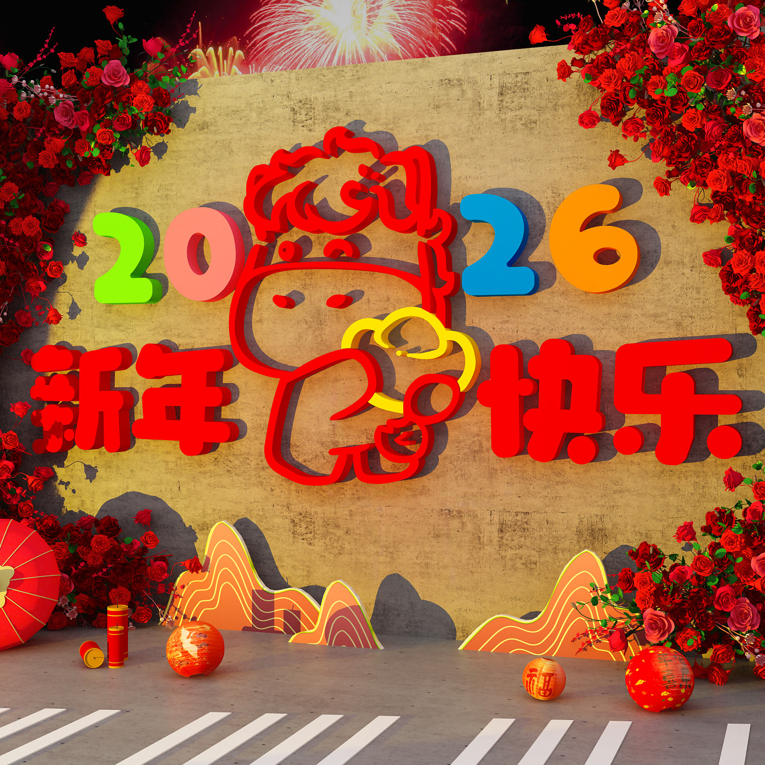 📚 2026过马新年快乐春节贴纸画客厅电视机背景墙壁面装饰挂件布置