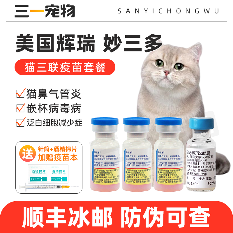 📚 辉瑞硕腾妙三多猫三联疫苗自打猫咪狂犬幼猫成猫猫瘟猫鼻支预防针