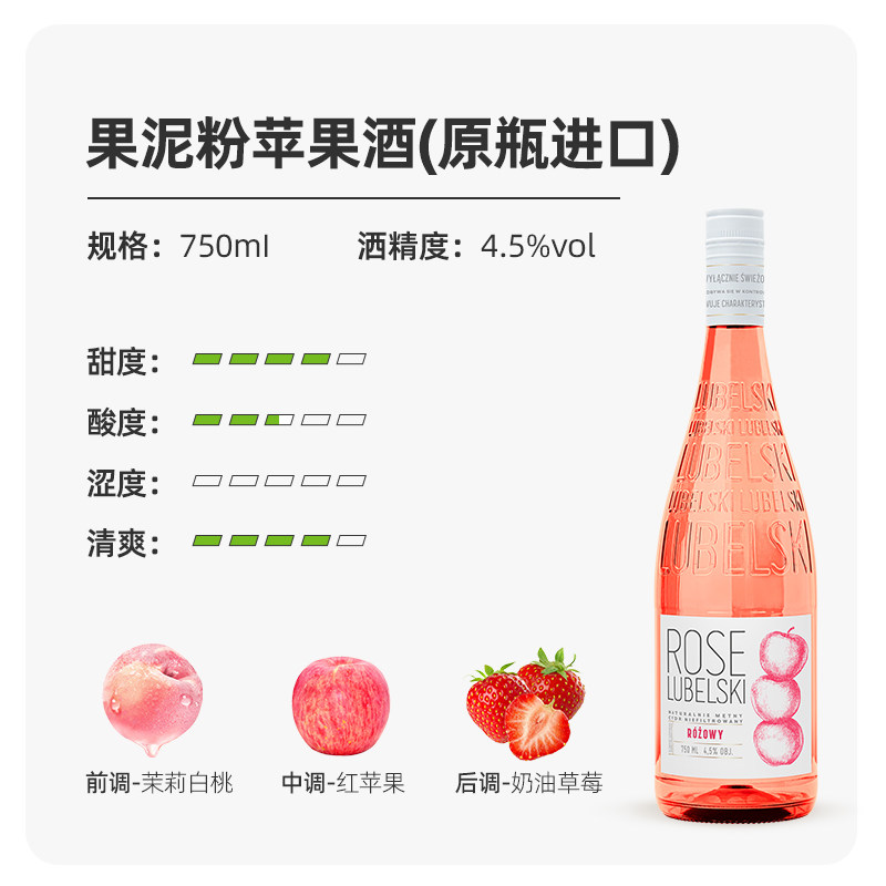 📚 【进口】嗨呀泡泡粉苹果果酒轻甜白桃草莓4.5度微醺气泡酒750ml