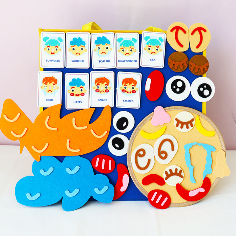 📚 五官表情贴认知玩具毛毡拼图教具儿童动手训练手工材料幼儿园早教