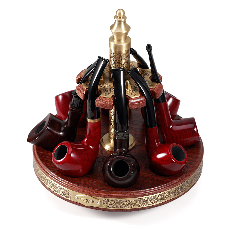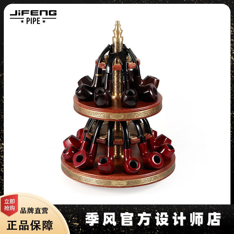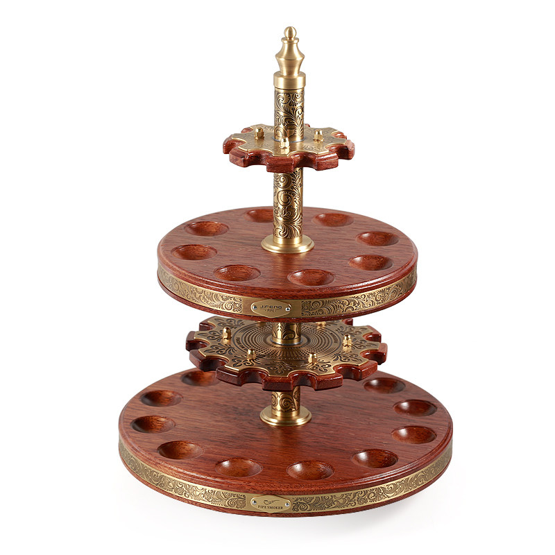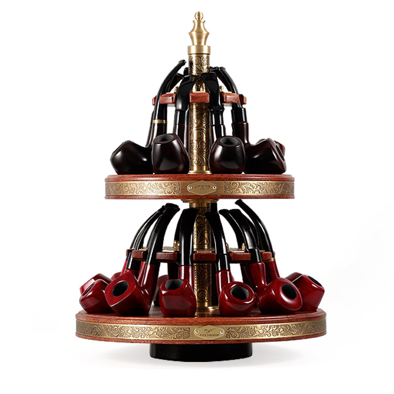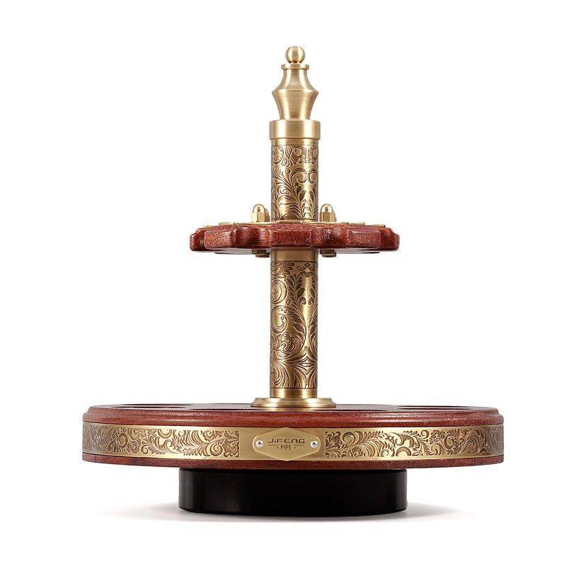 📚 JIFENG季风多槽烟斗展示座纯铜雕花菠萝格木旋转二十位双层烟斗架