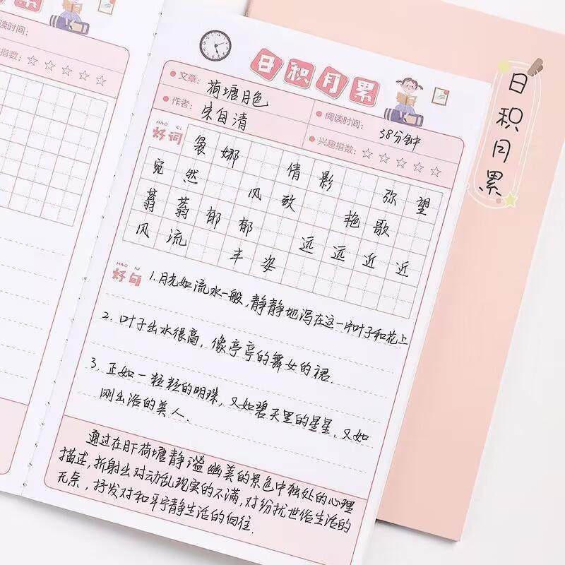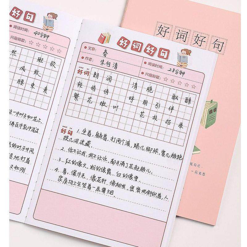 📚 卡通好词好句摘抄本 小学生日积月累读书笔记本 语文读后感摘记本