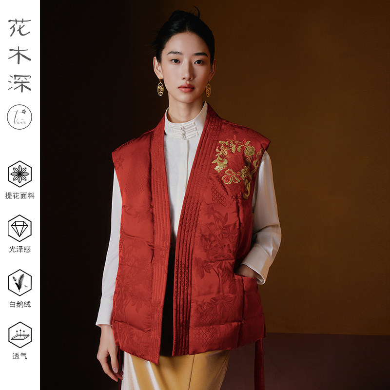 📚 【韩雪同款】花木深新中式马甲本命年红色拜年服鹅绒羽绒刺绣马夹