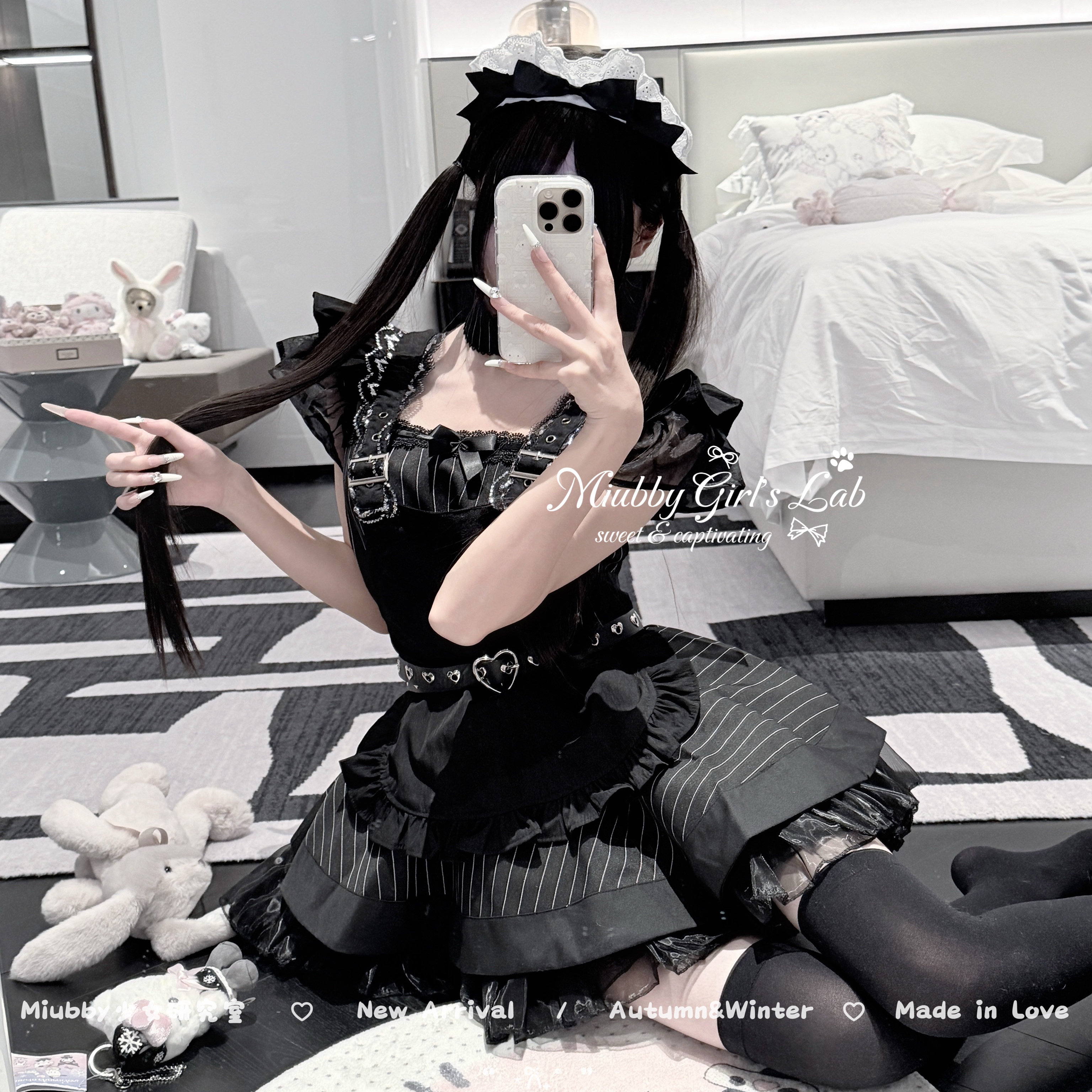 📚 Miubby「格蕾之恋」日系亚文化哥特风条纹女仆装Lolita狗短连衣裙