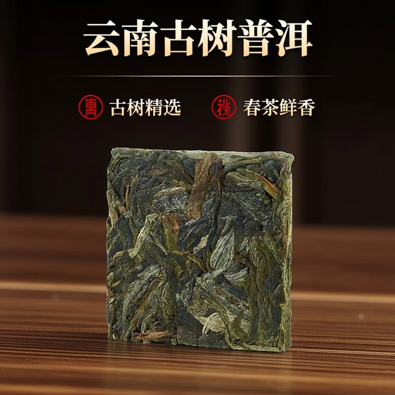 📚 云南麻栗坡古树普洱茶生茶小方片云南文山国礼贡茶饼干茶8克茶叶
