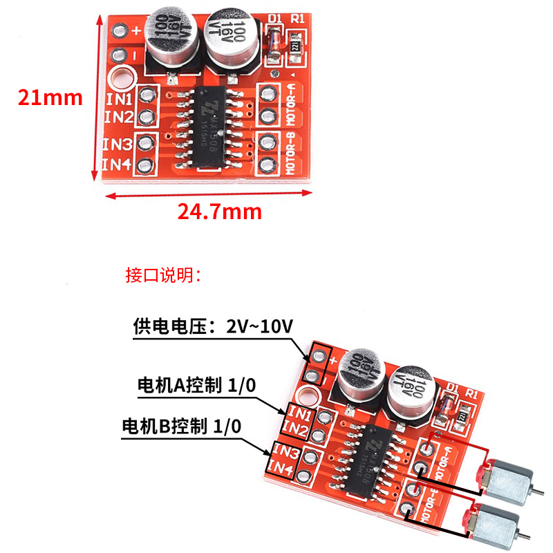 📚 L298N电机驱动板模块 迷你2路直流步进电机正反转 智能小车 红板