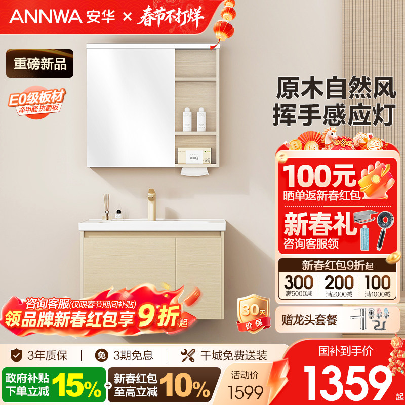 💥安华卫浴浴室柜,极简原木风洗手盆,券后价2364!💖