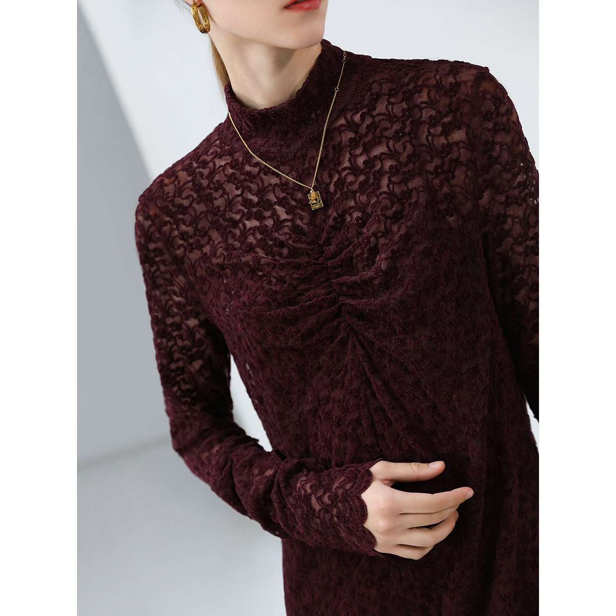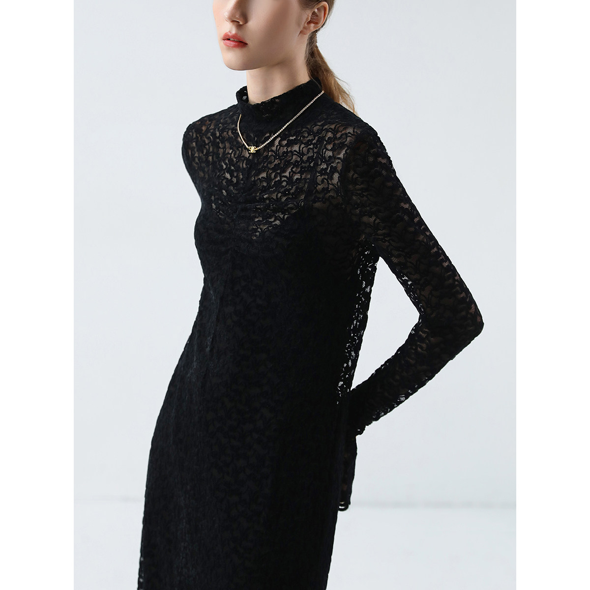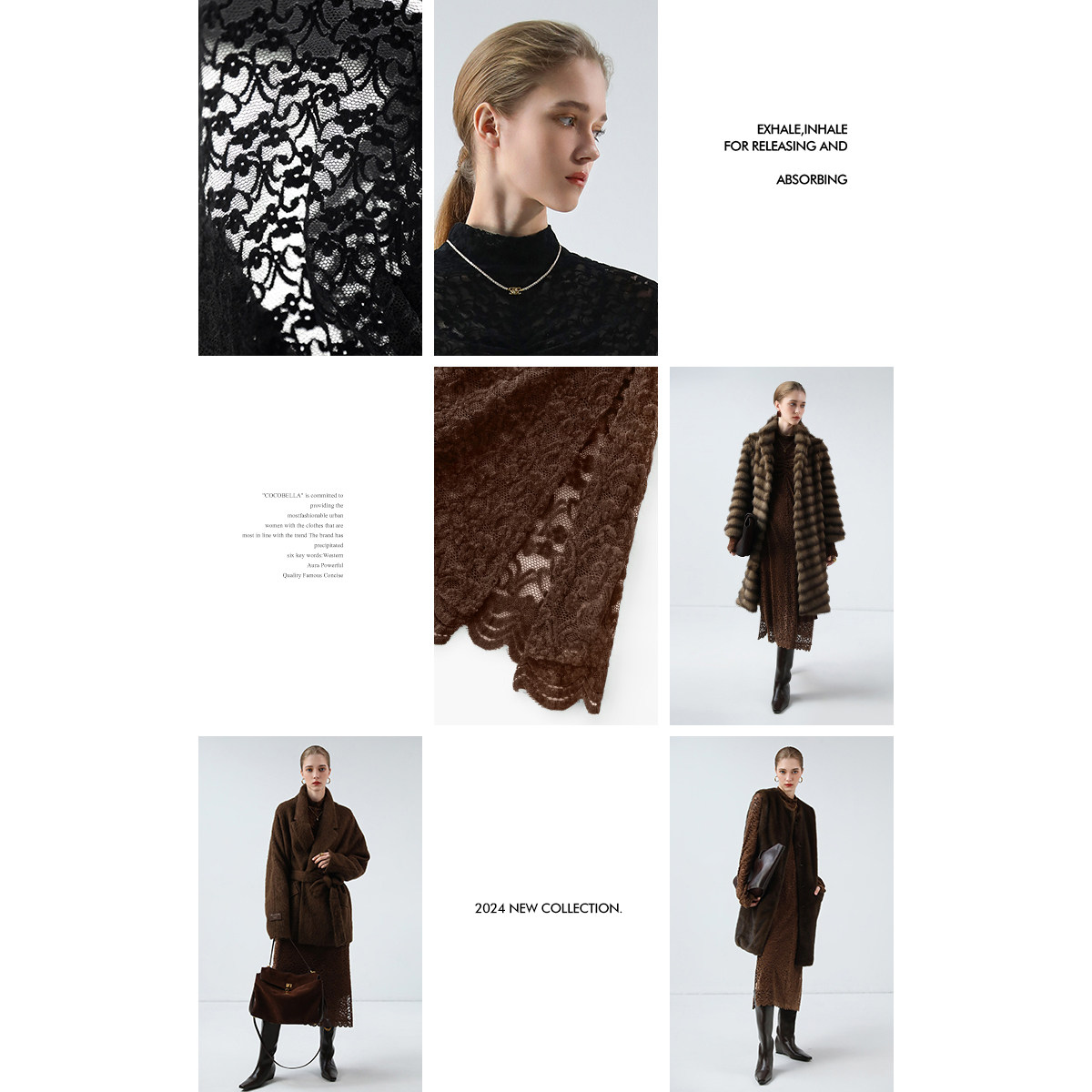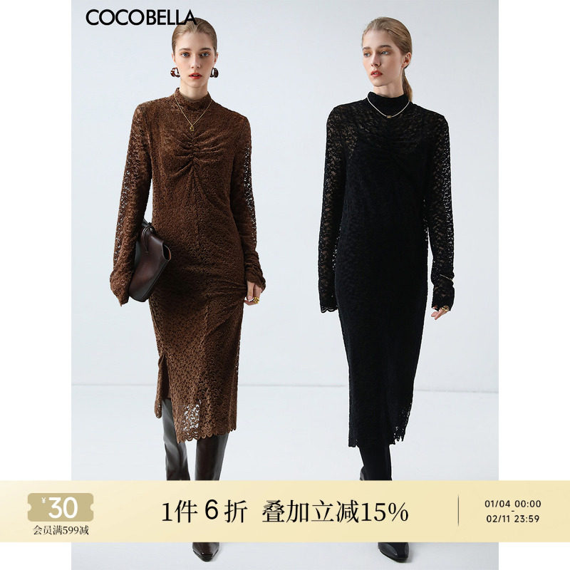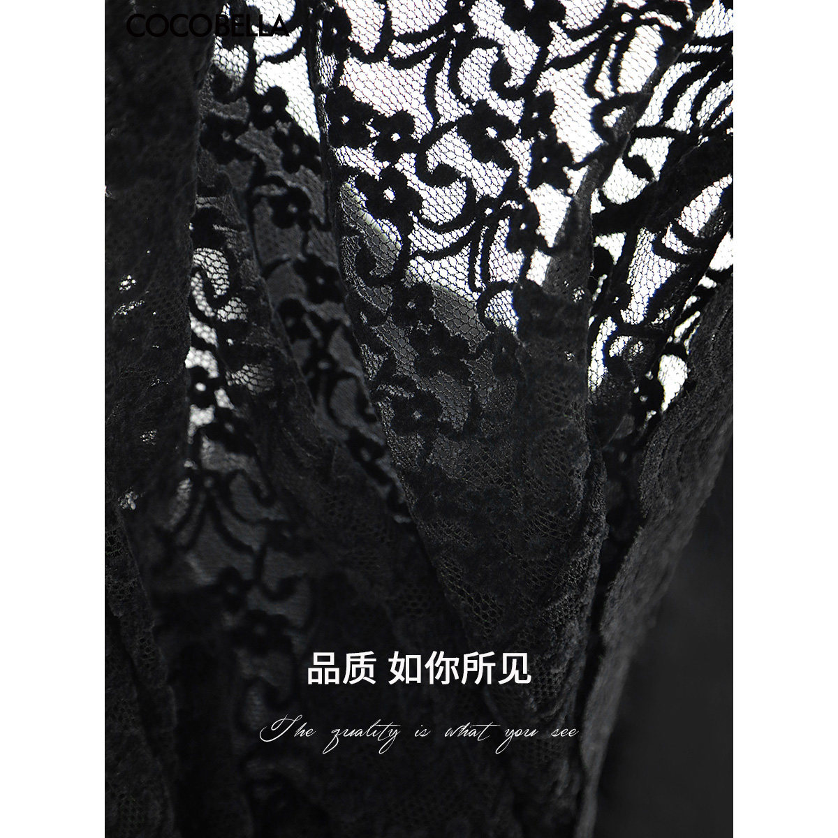 📚 COCOBELLA优雅女人味植绒蕾丝抽褶连衣裙侧开叉裙摆两件套FR7082