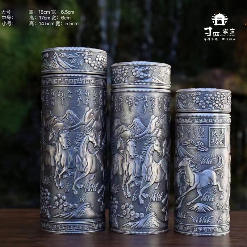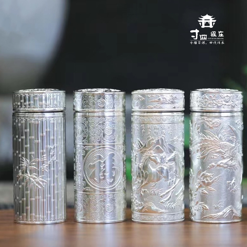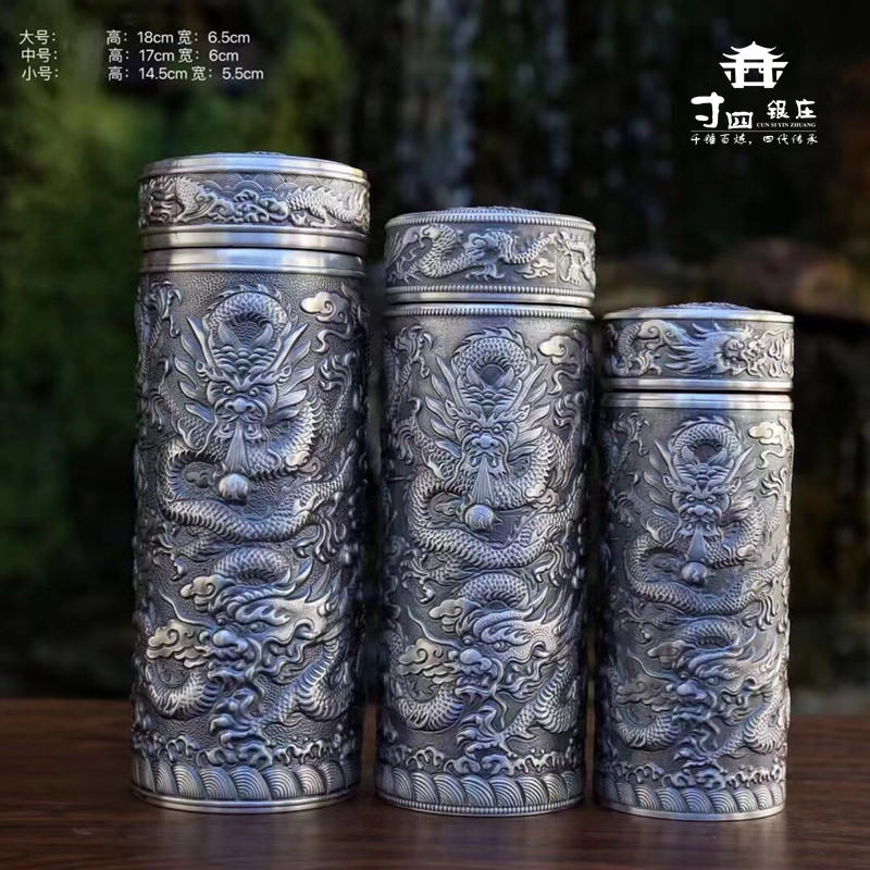📚 寸四雪花银足银999 正品足银九龙杯内外足银杯高档复古