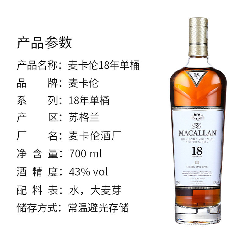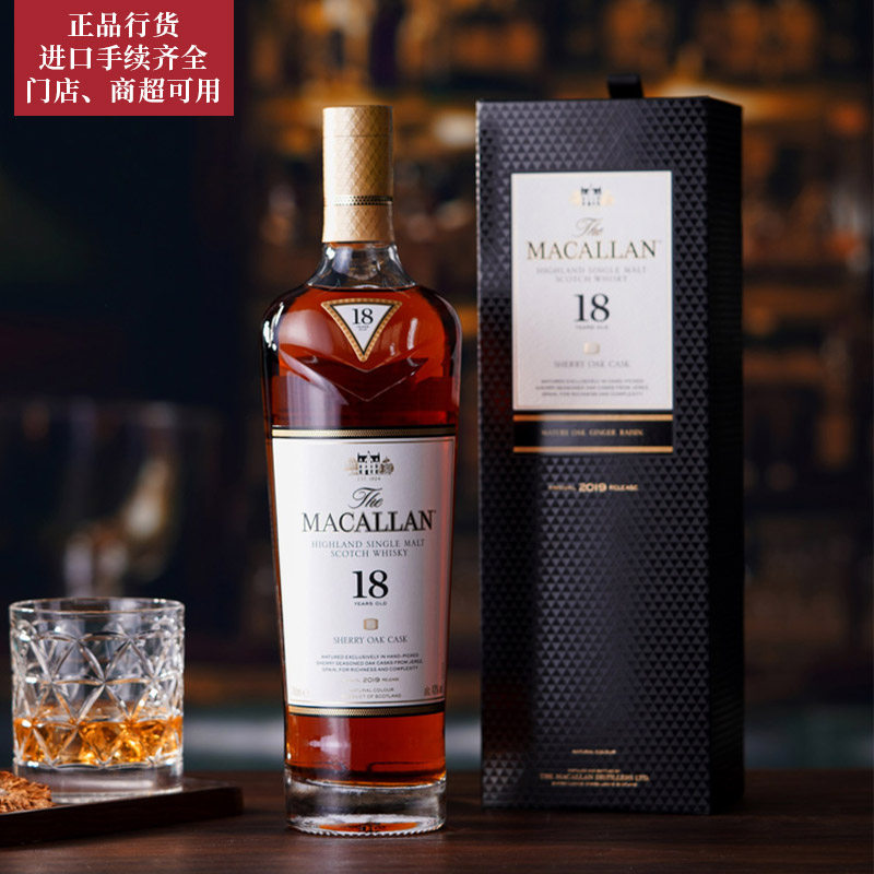 📚 苏格兰麦卡伦18年雪莉桶单一麦芽威士忌700ml 礼盒装正品行货