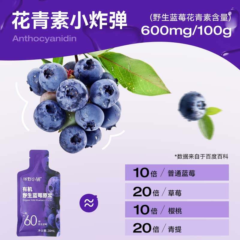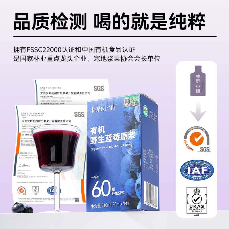 📚 林野小铺100%有机野生蓝莓原浆大兴安岭鲜榨nfc蔓越莓蓝莓汁饮料