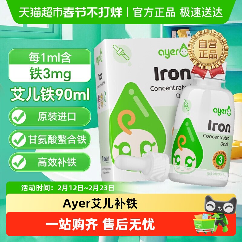📚 ayer艾儿浓缩饮液铁甘氨酸亚铁补铁剂补铁美国原装进口