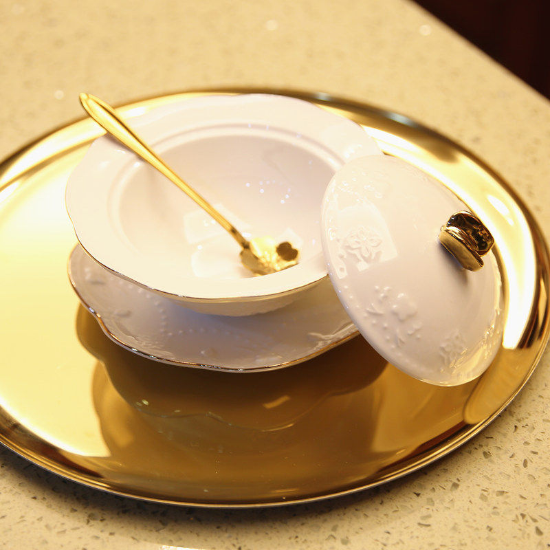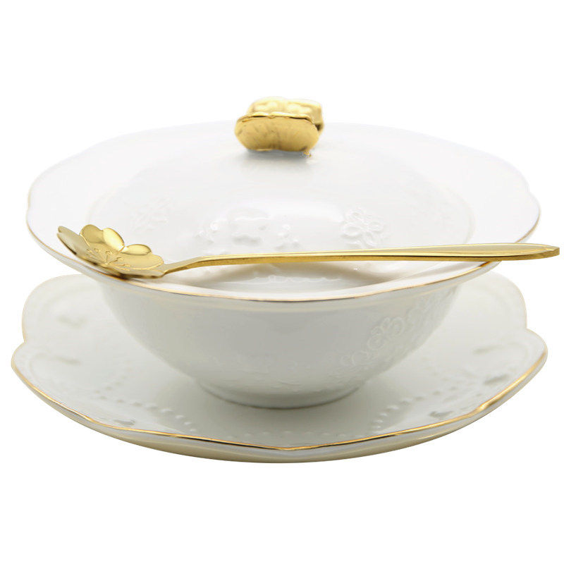 📚 金蝴蝶带盖燕窝碗瓷碗 浮雕碗 鱼翅盅 银耳糖水碗布丁