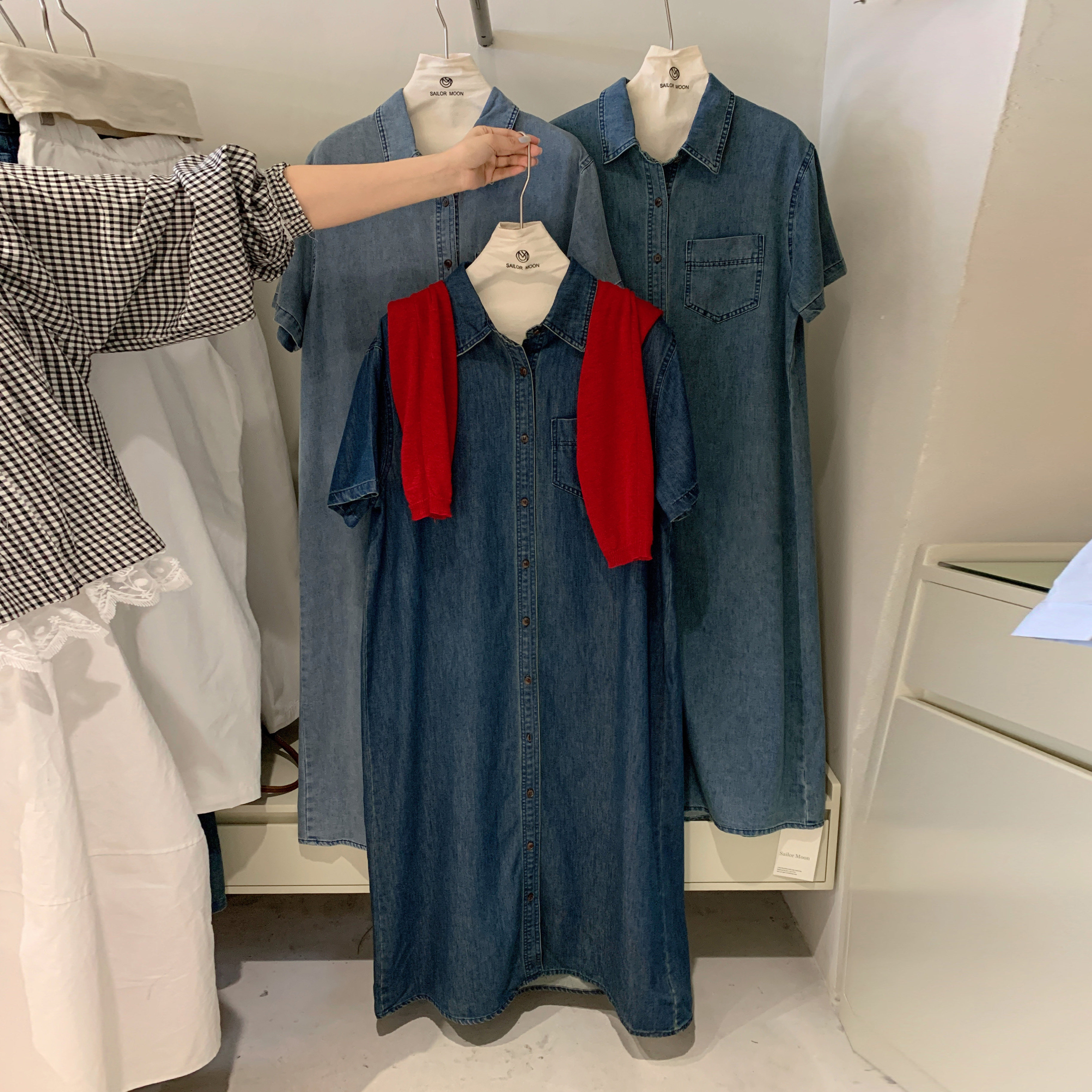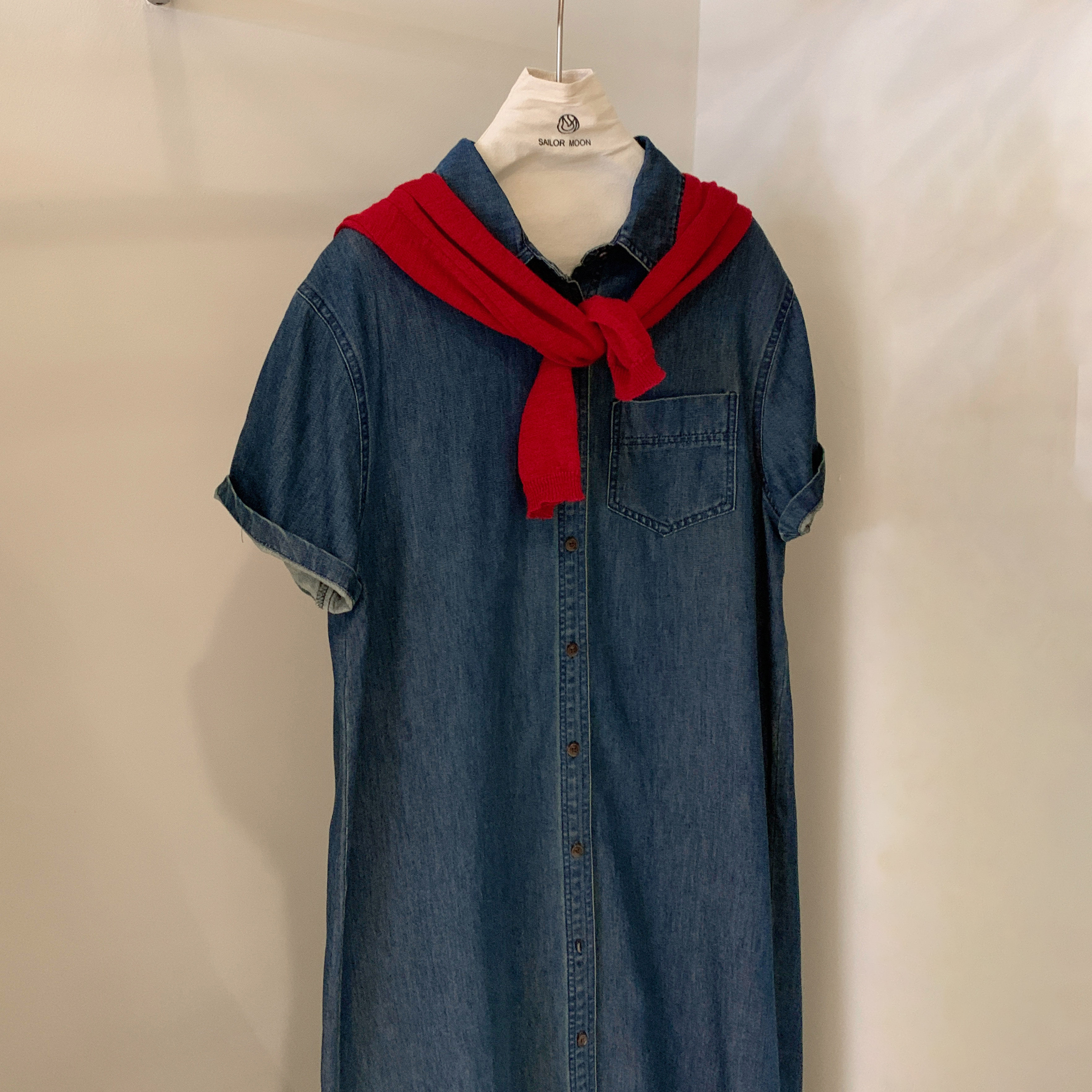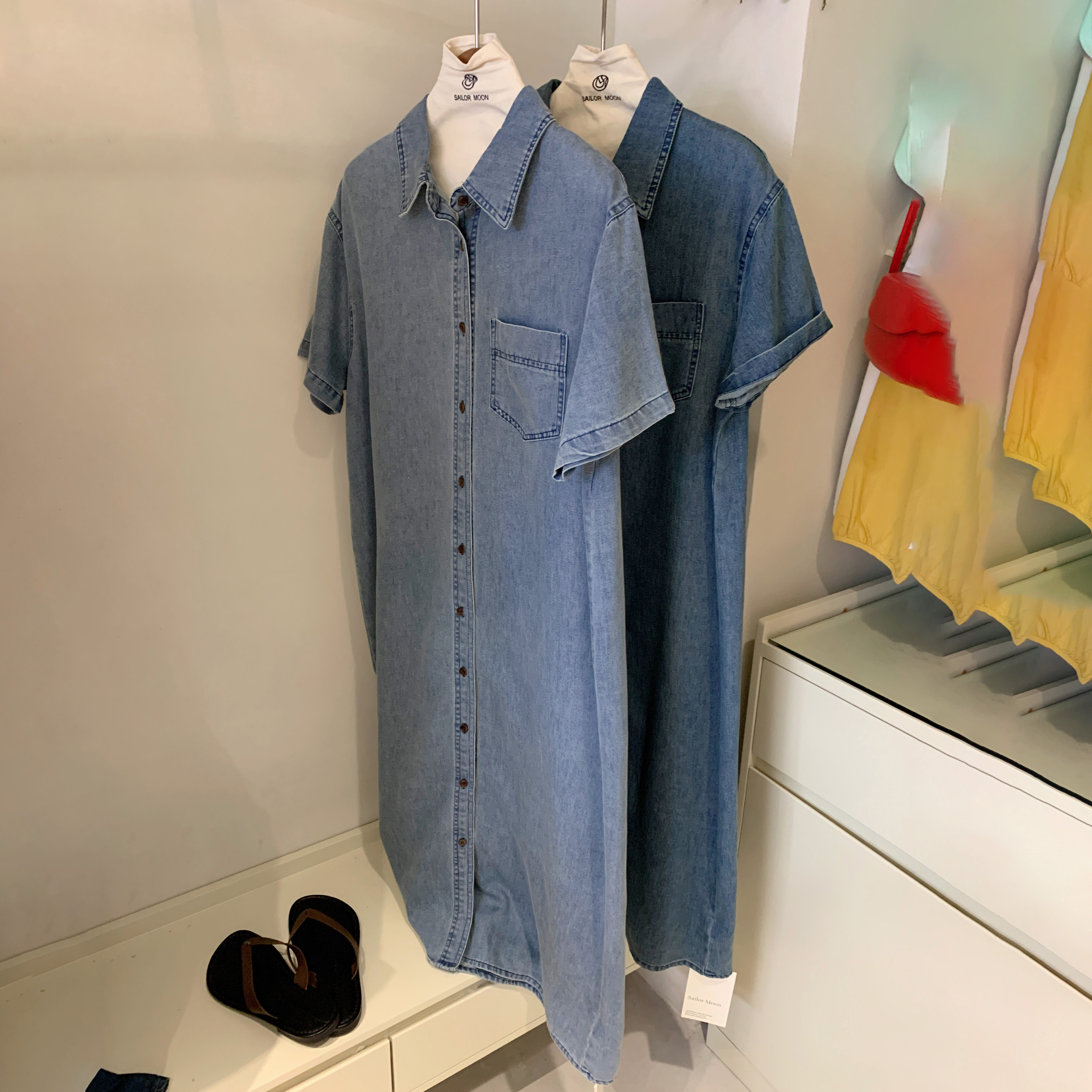 📚 想象家SAILORMOON韩系简约风牛仔连衣裙宽松显瘦百搭衬衣长裙女潮