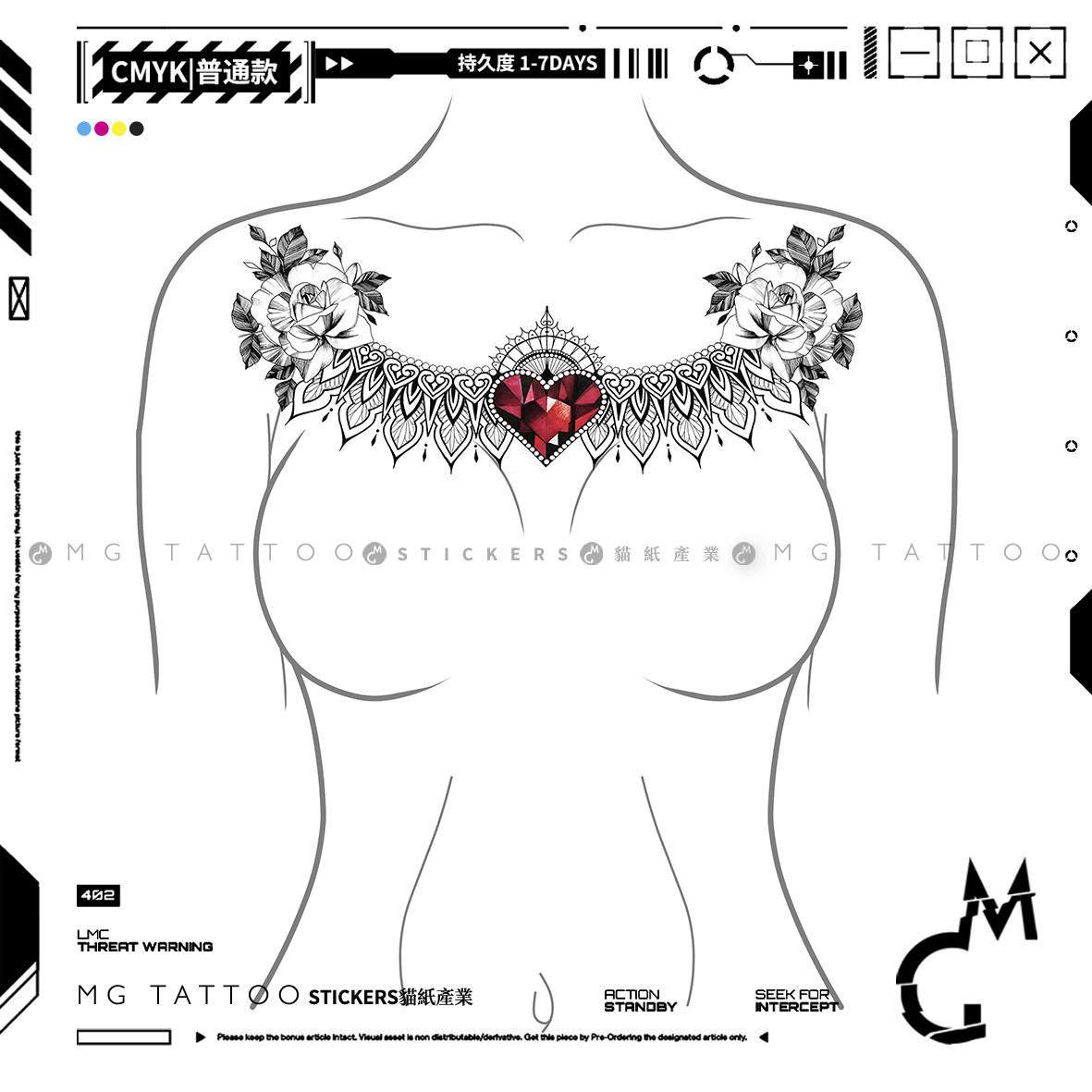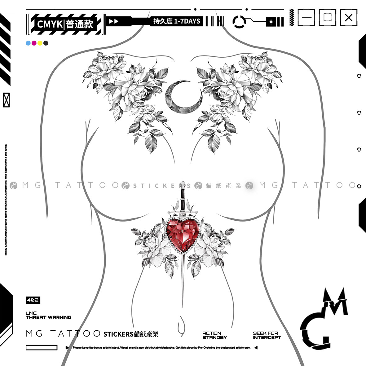 📚 MG tattoo 永恒之心 度假大图少女御姐美体遮疤装饰防水纹身贴女