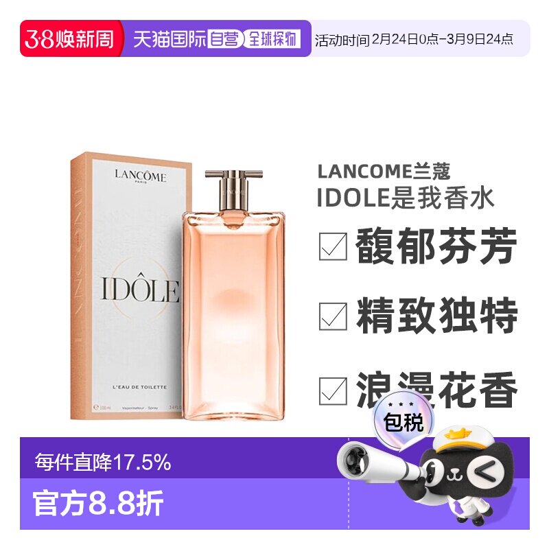 99¥ CZ057 9hf4Utl1WFk¥ https://m.tb.cn/h.iXZPNJE 香港直邮Lancome兰蔻idole是我浓香水EDP/淡香水EDT 50/100ml正品 --------------------- 【原售价】1,999元 【现售价】840元。