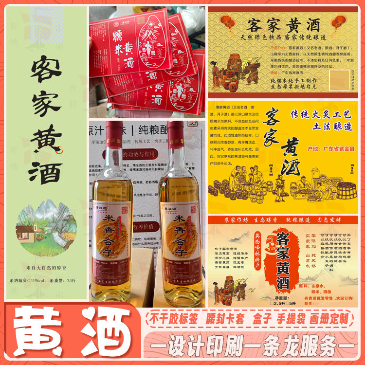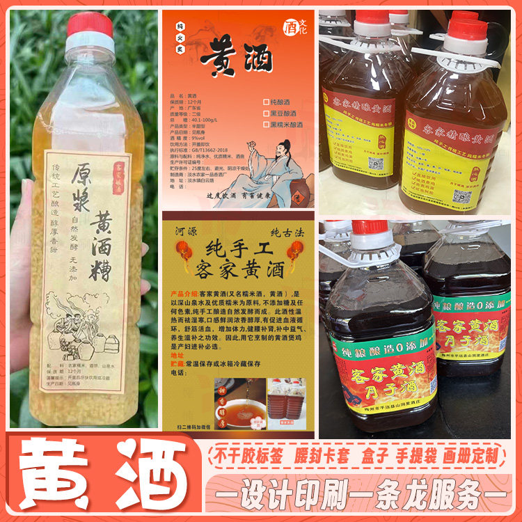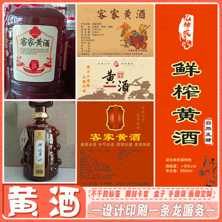 📚 定制房县客家黄酒瓶纯伏汁标签贴纸米月子娘子酒白酒散酒不干胶贴