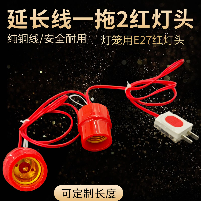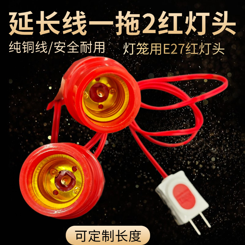 📚 新年红色灯笼线一拖二红室内2026铜线带插头新款红色灯头一拖二