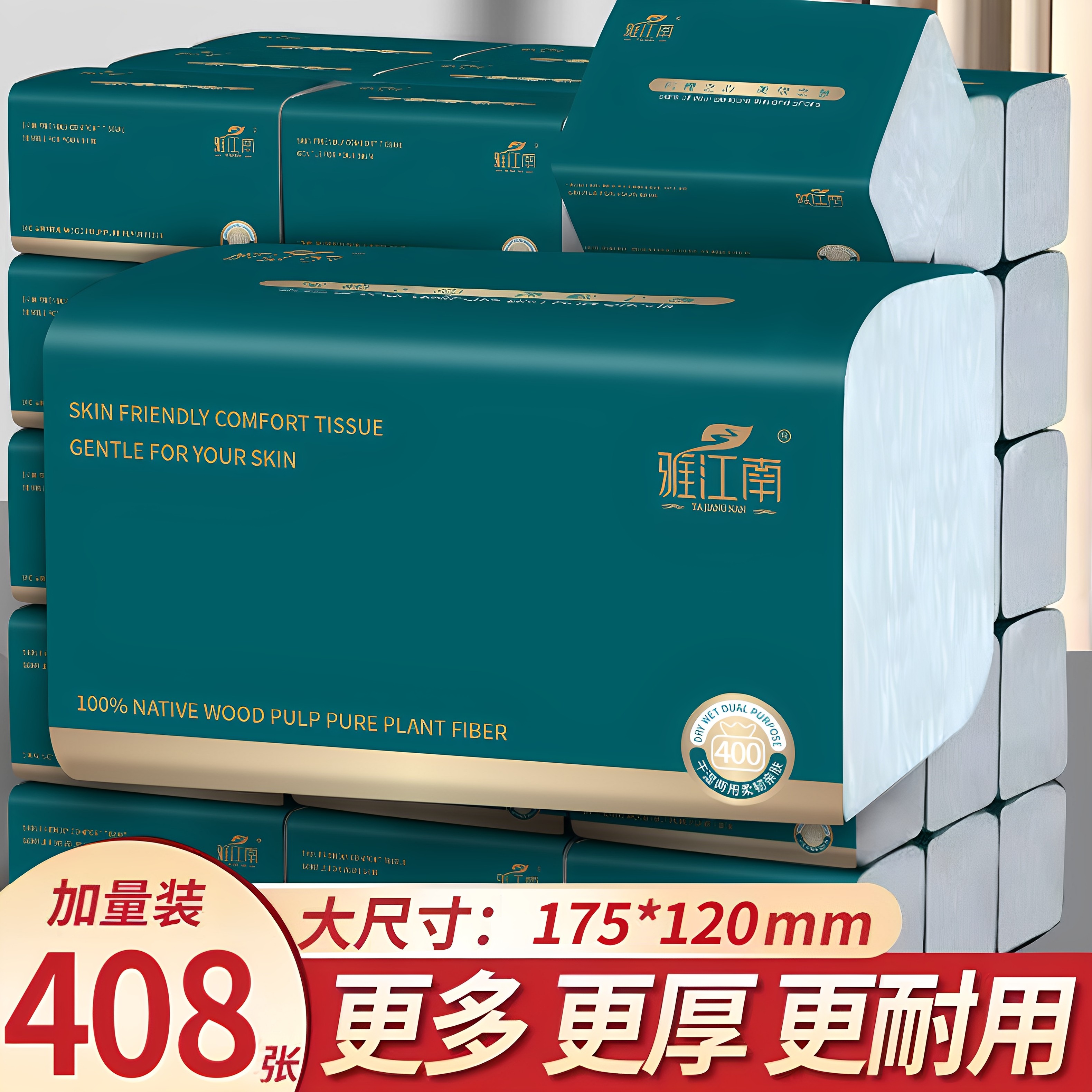 📚 【加量408张】原木抽纸巾整箱批发家用面巾纸卫生纸抽大包家庭装