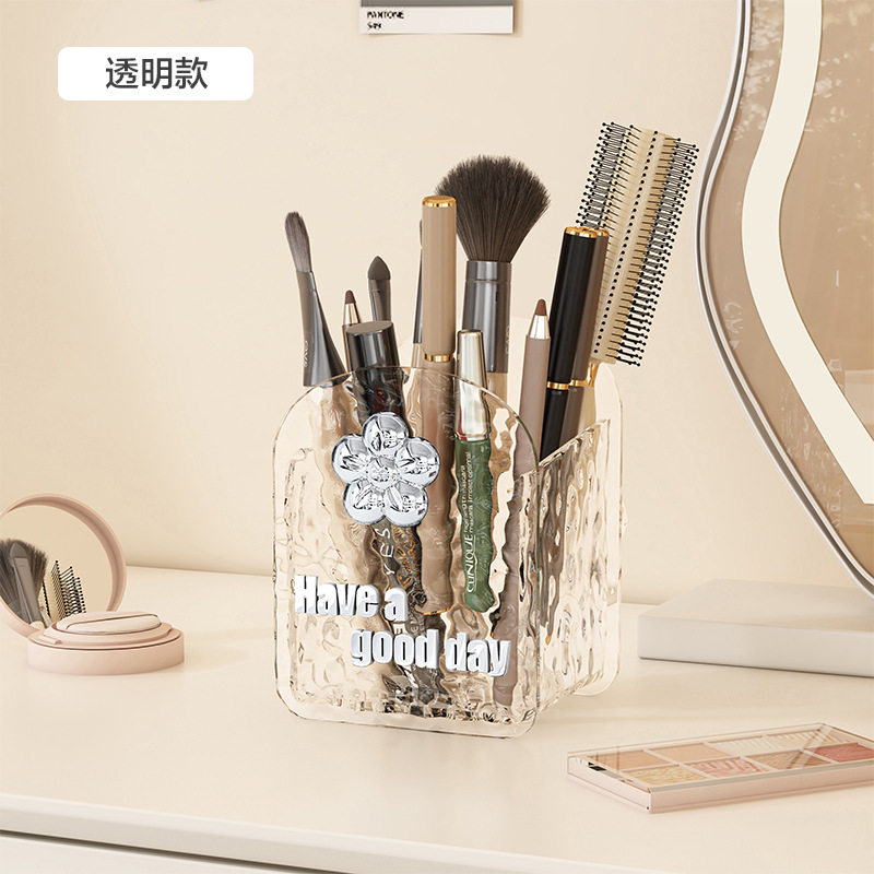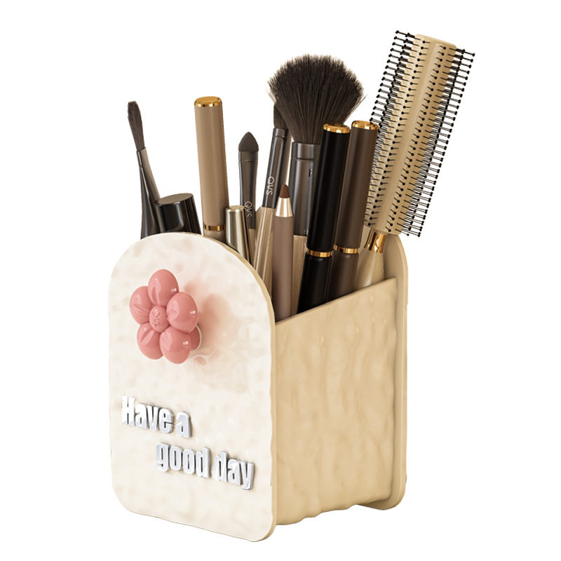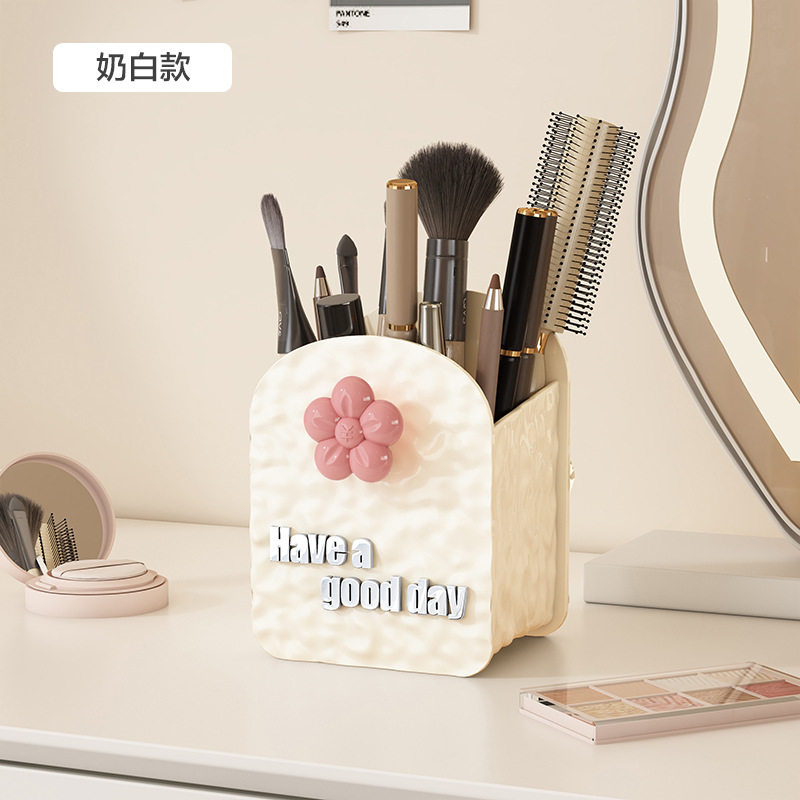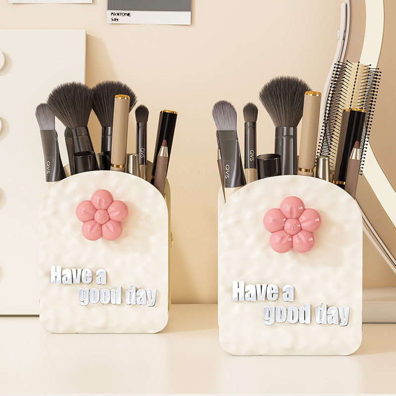 📚 桌面化妆刷收纳盒梳妆台摆件化妆品笔筒工具刷子收纳筒花朵冰川纹
