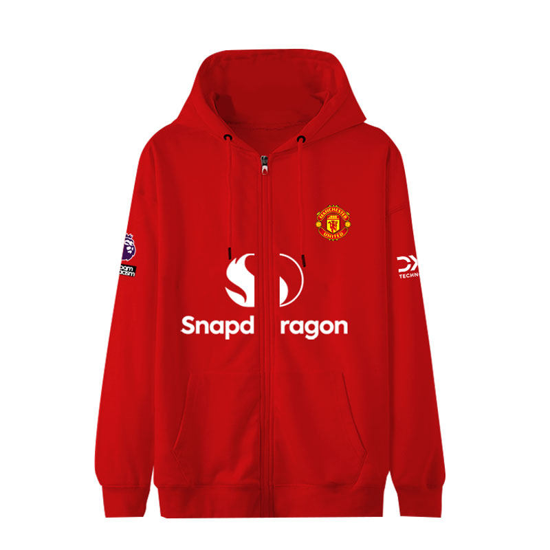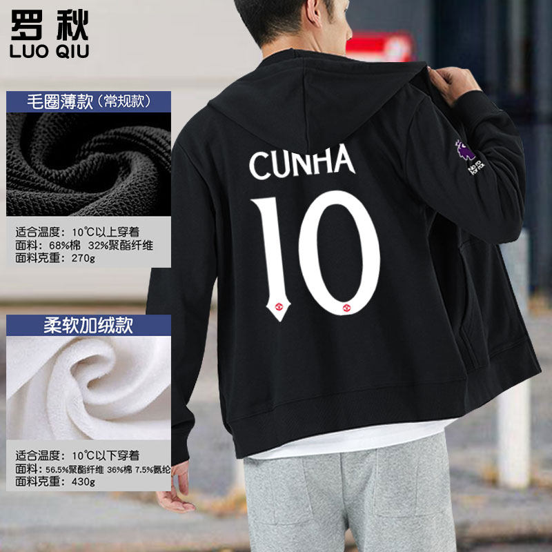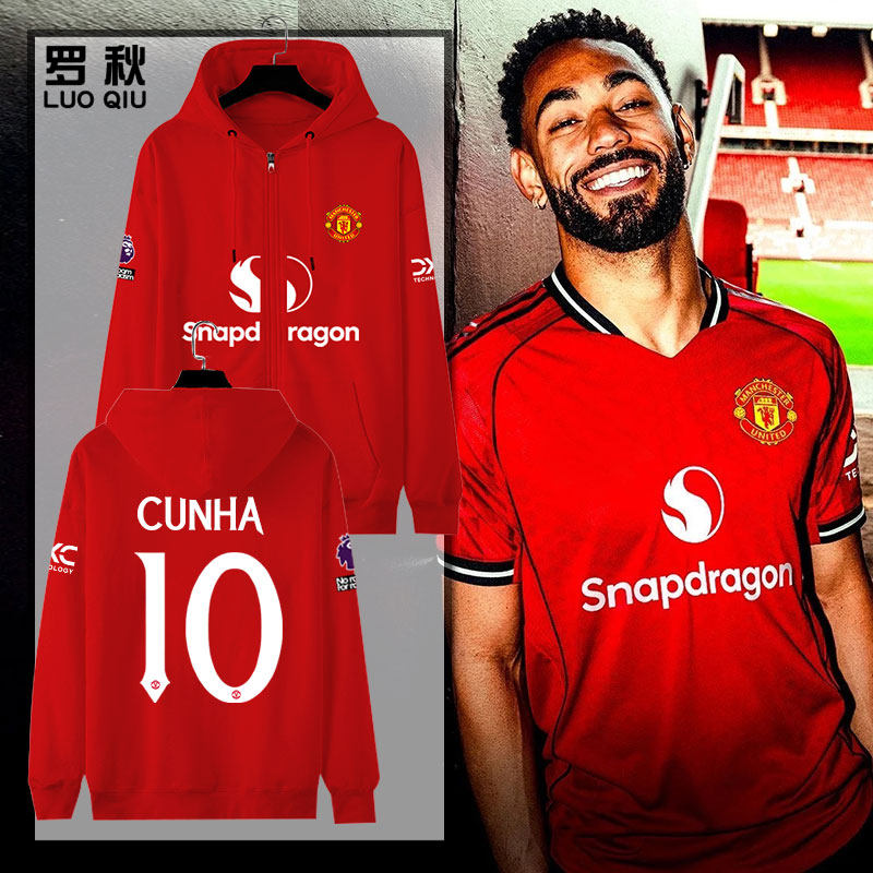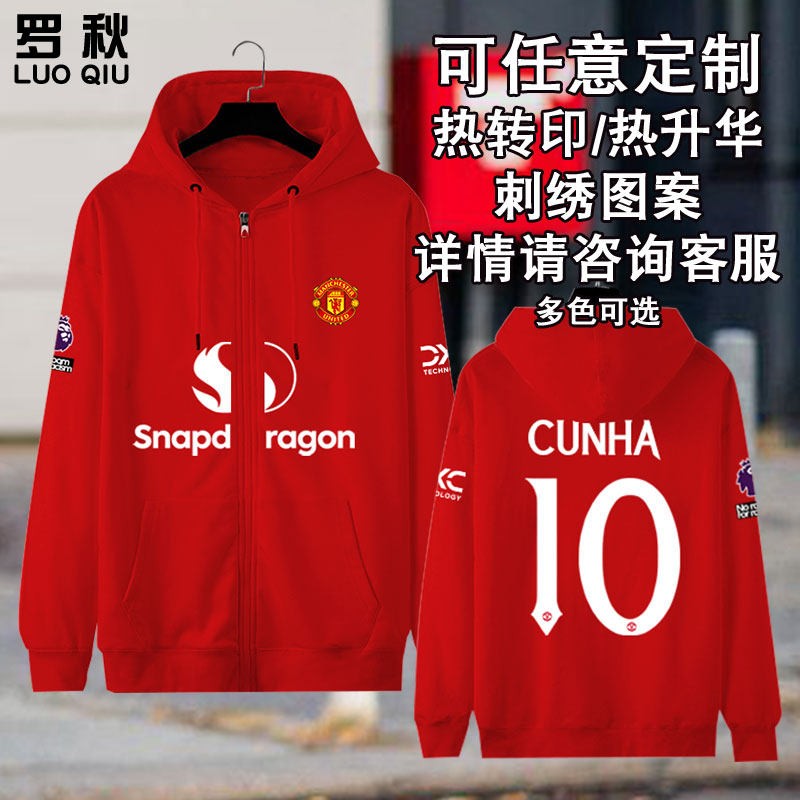 📚 25-26曼联队服红魔库尼亚足球衣服开衫卫衣男女球迷服带连帽外套