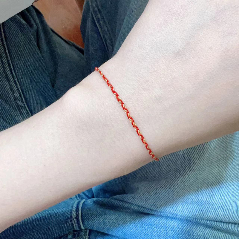 📚 美国14k包金原创编织拼接红绳手链女本命年脚链足链转运定制新款