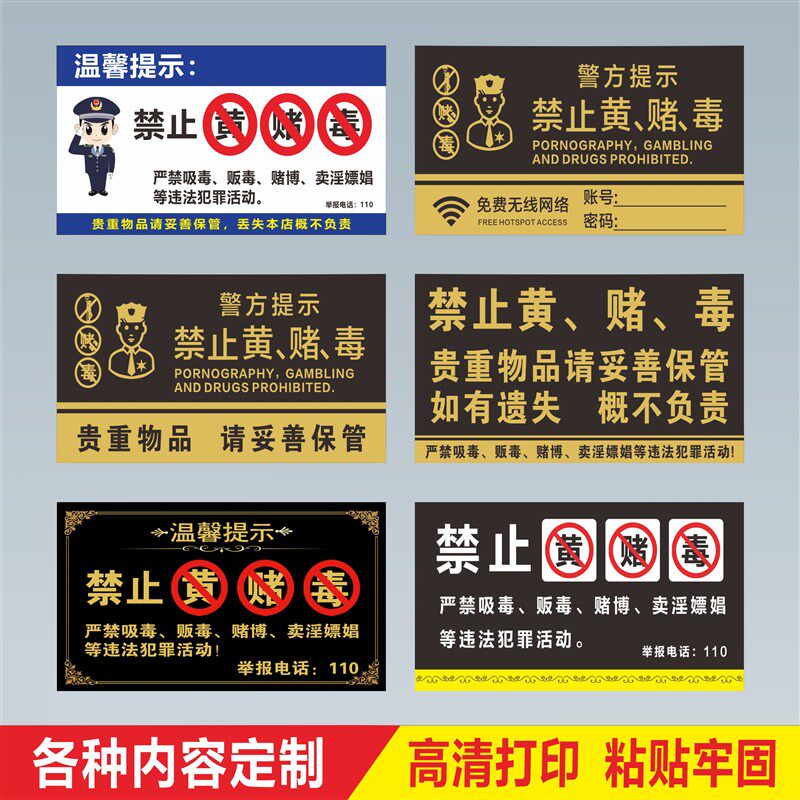 📚 禁止黄赌毒标识牌酒店旅馆酒吧温馨提示三禁警示标语禁止未成年