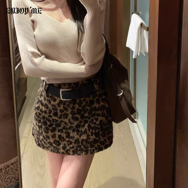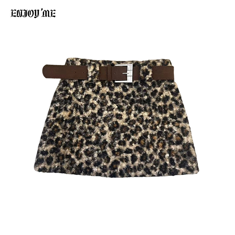 📚 ENJOYME商场同款美式复古豹纹短裙女2026春设计感高腰腰带半身裙