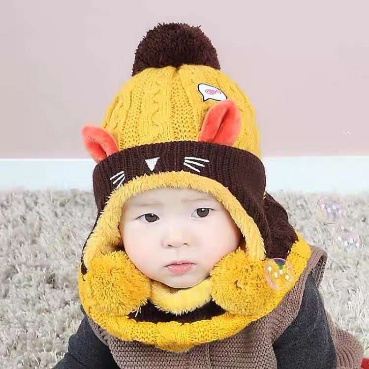 📚 婴儿帽子秋冬护耳保暖小狗儿童帽1-2岁月男童女宝宝围巾套装冬季