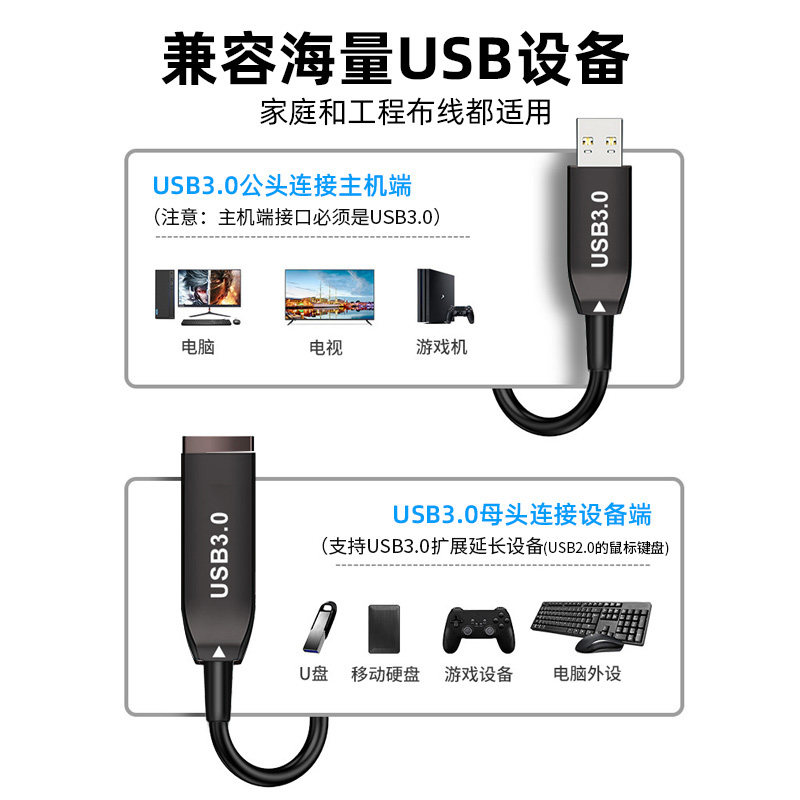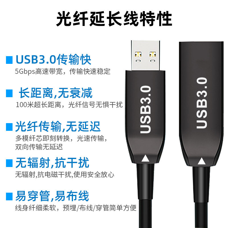 📚 USB3.0光纤线公对母延长线高速数据传输连接线usb3.0光纤加长线Kinect V2 DK体感 摄像头会议30米50米