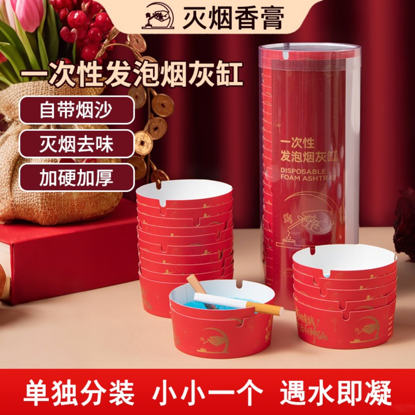 📚 自带灭烟沙一次性烟灰缸清洁剂户外加硬加厚吸附防灰便携灭烟去味