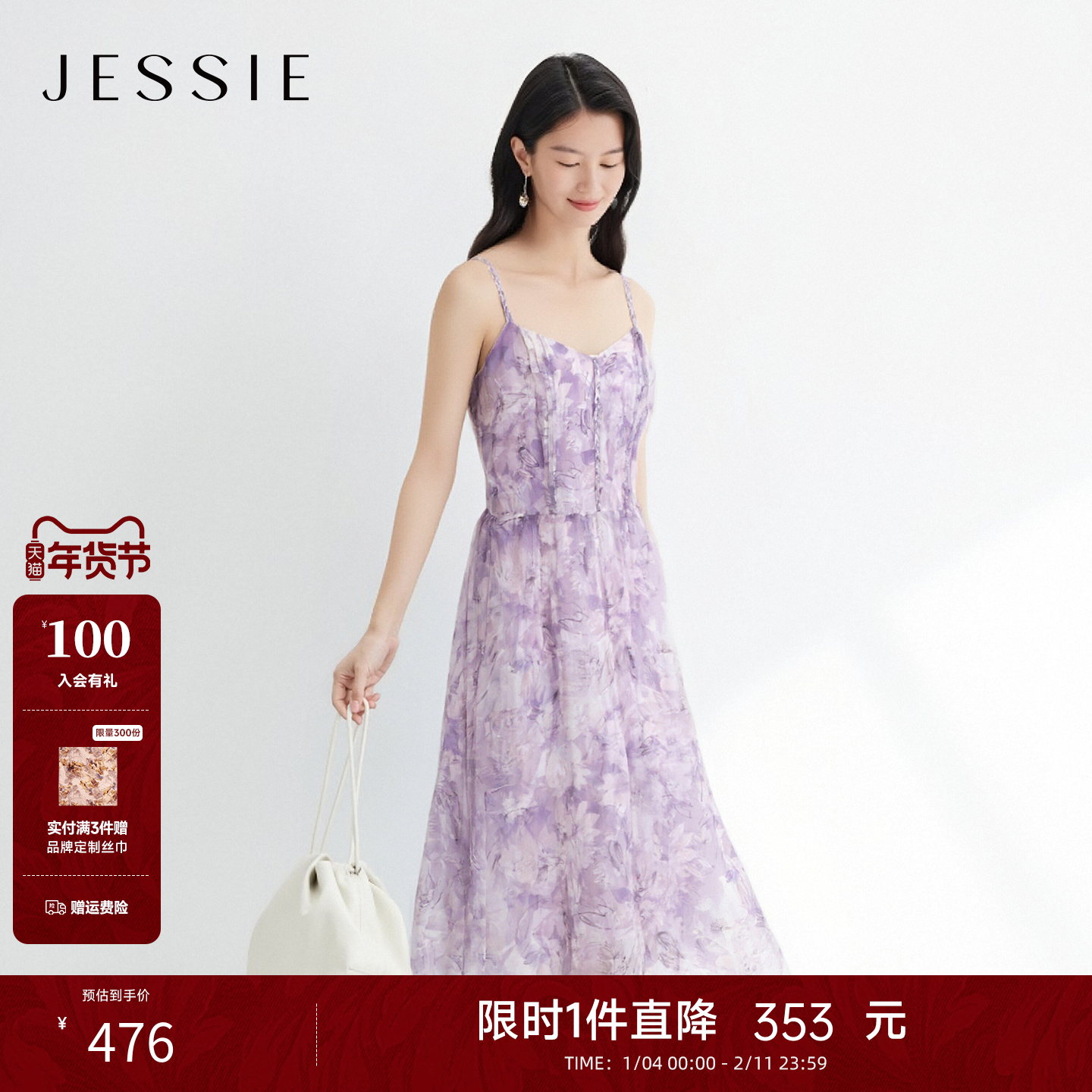 💃【凝紫花影】JESSIE2025年春夏新款气质优雅雪纺印花吊带连衣裙,好物入手记🛍