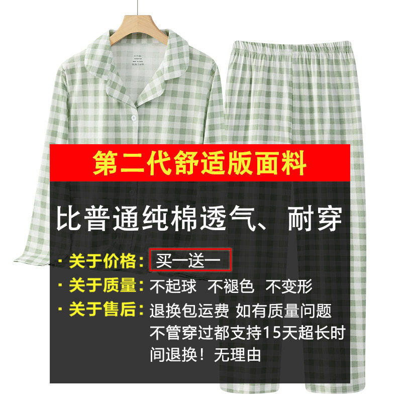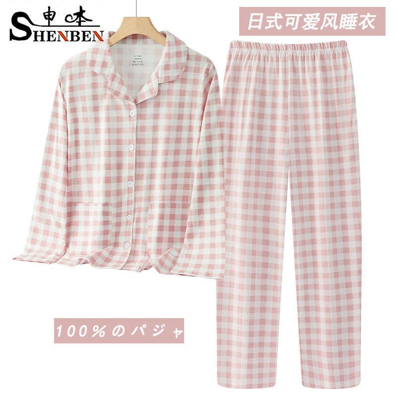 📚 申本新疆棉睡衣女春秋纯棉长袖长裤套装格子时尚可外穿全棉家居服