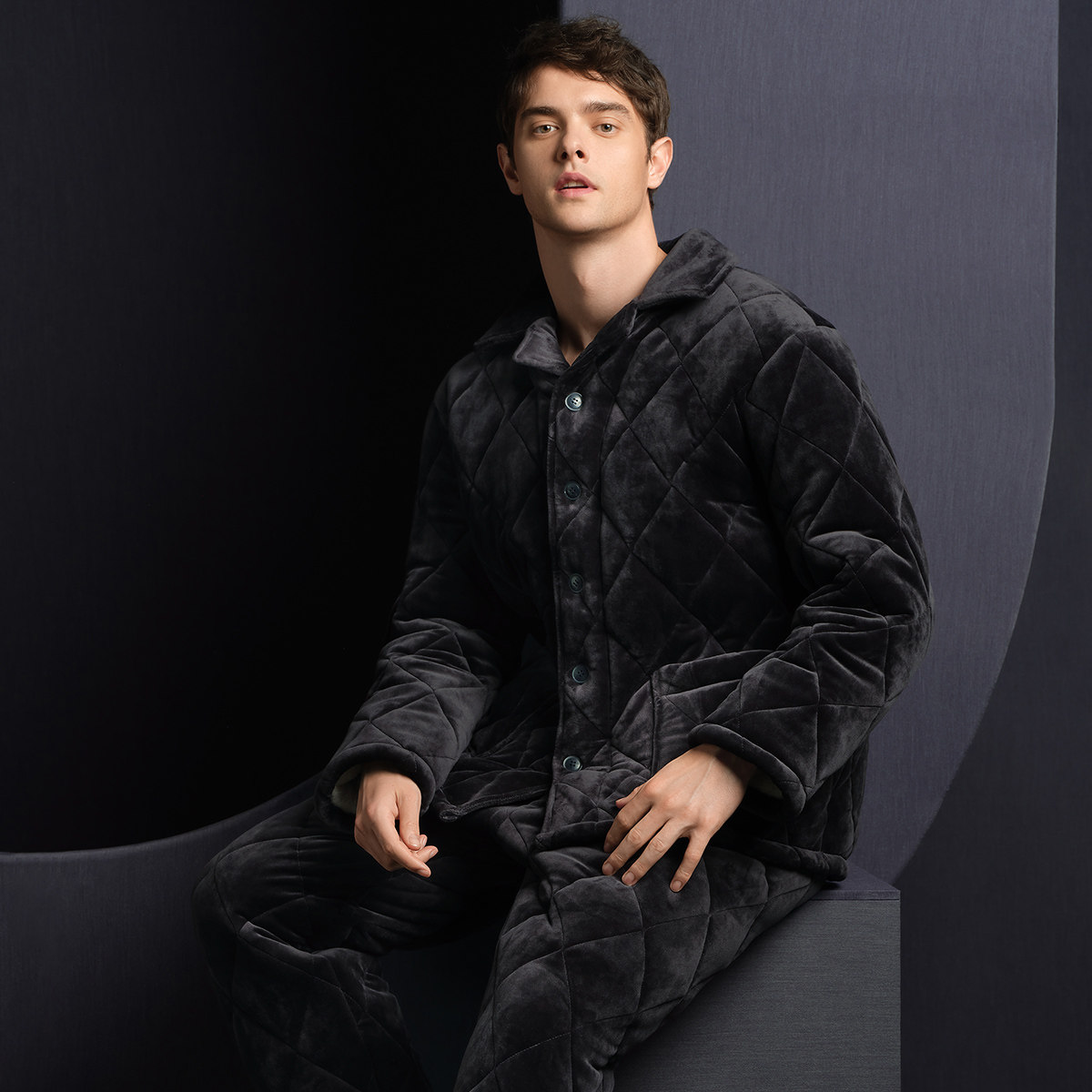 📚 安莉芳旗下IVU男士米粒绒加厚翻领开衫睡衣宽松家居服套装ULY0202