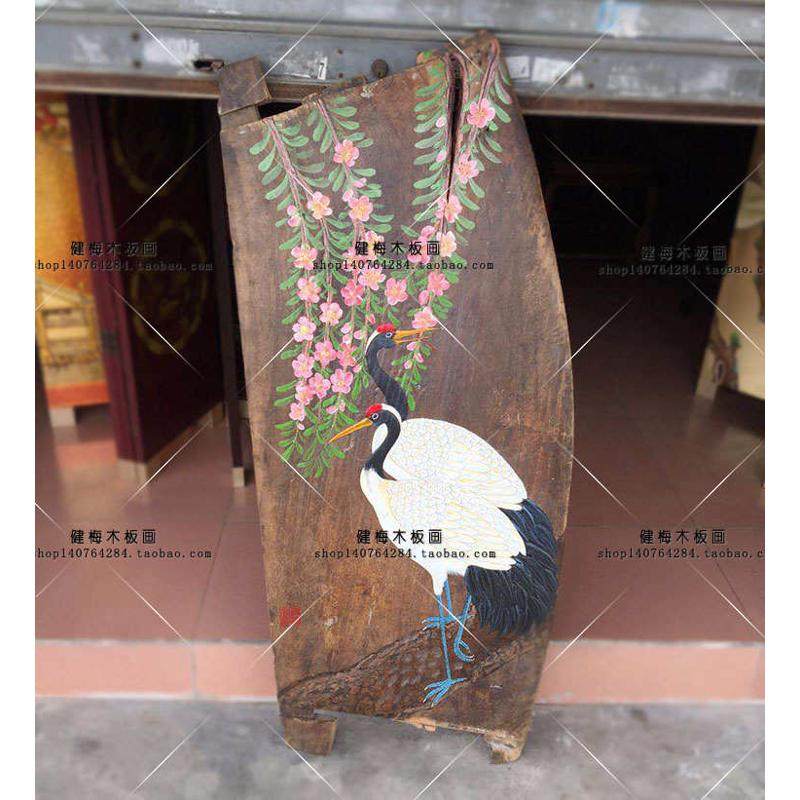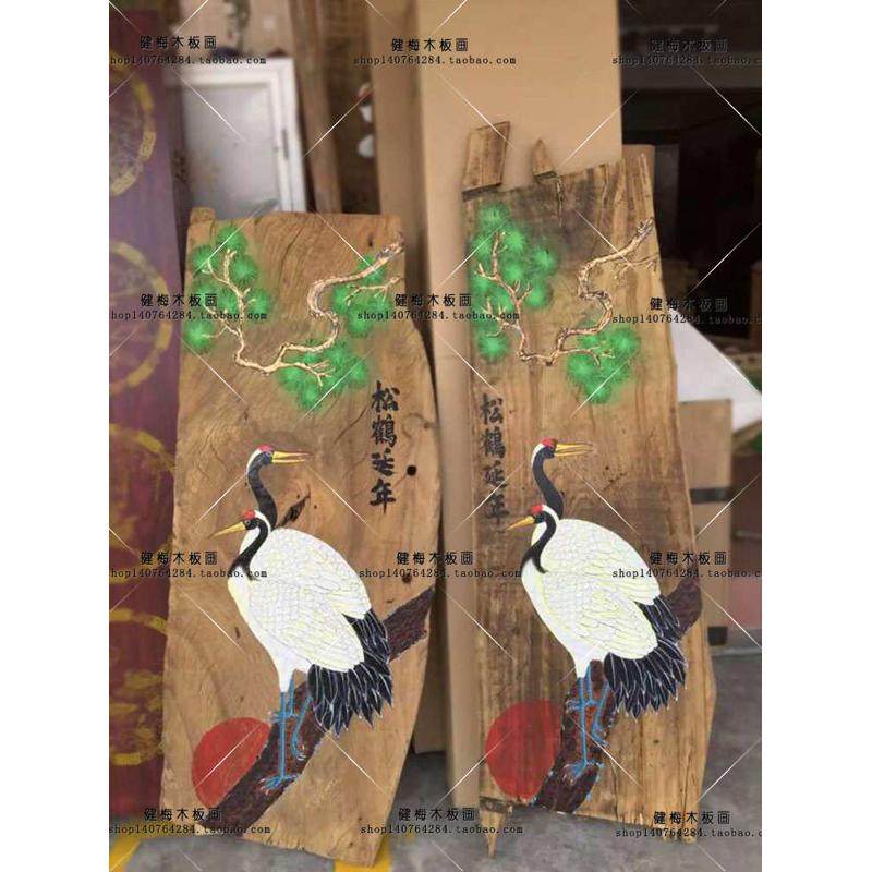 📚 框风化画装饰画木板挂画 手绘延年无松鹤樟木漆画客厅壁画画老画