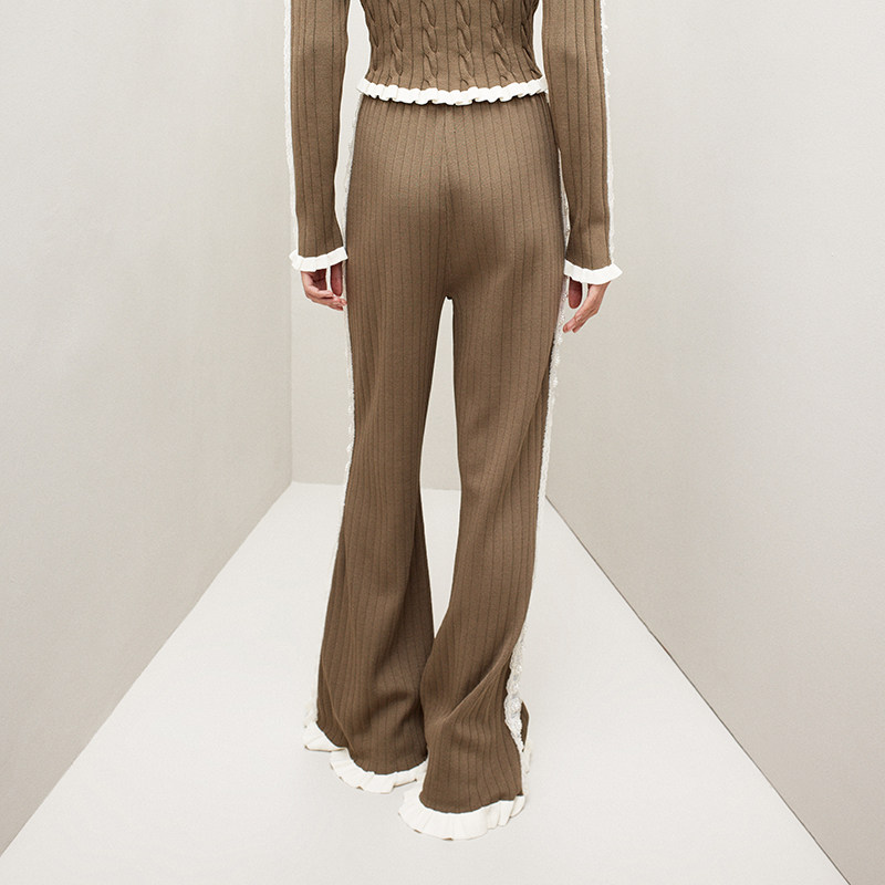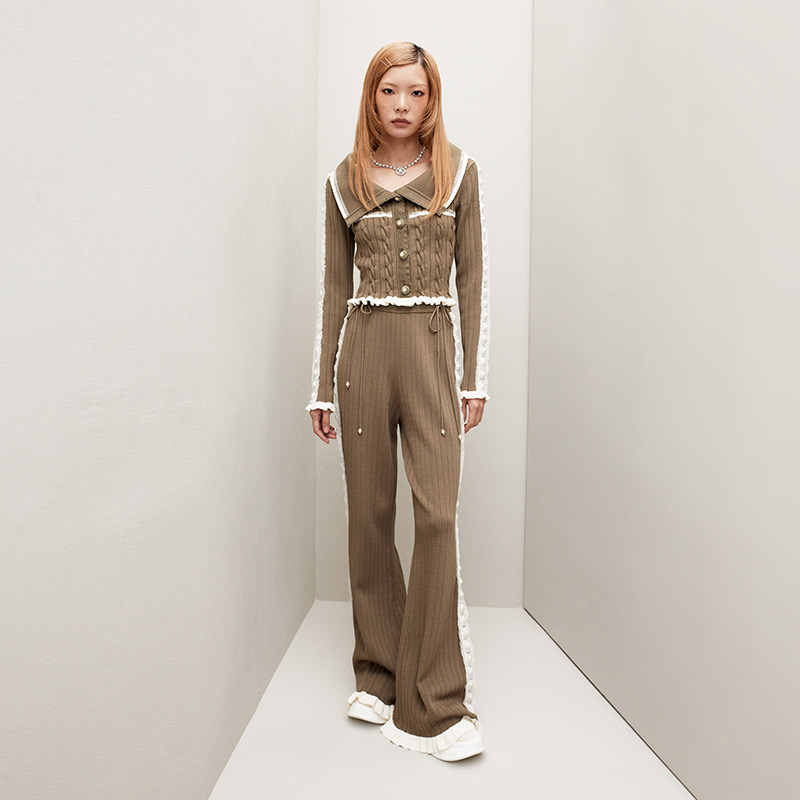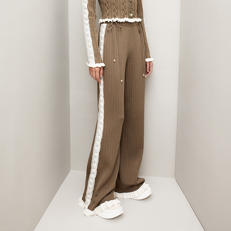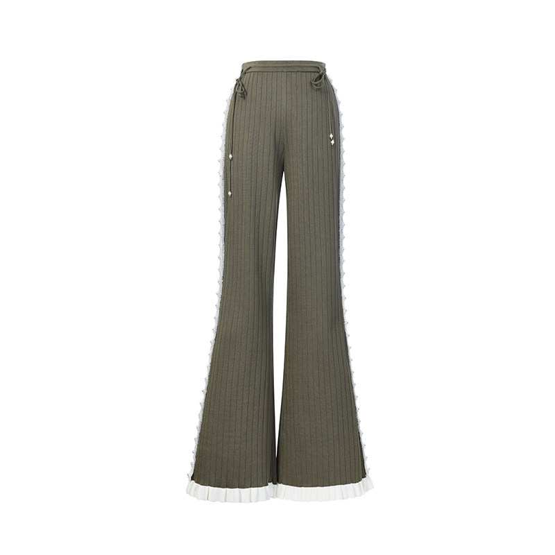 📚 lefame拉飞姆2026春季灰绿华丽珍珠撞色直筒针织裤阔腿裤