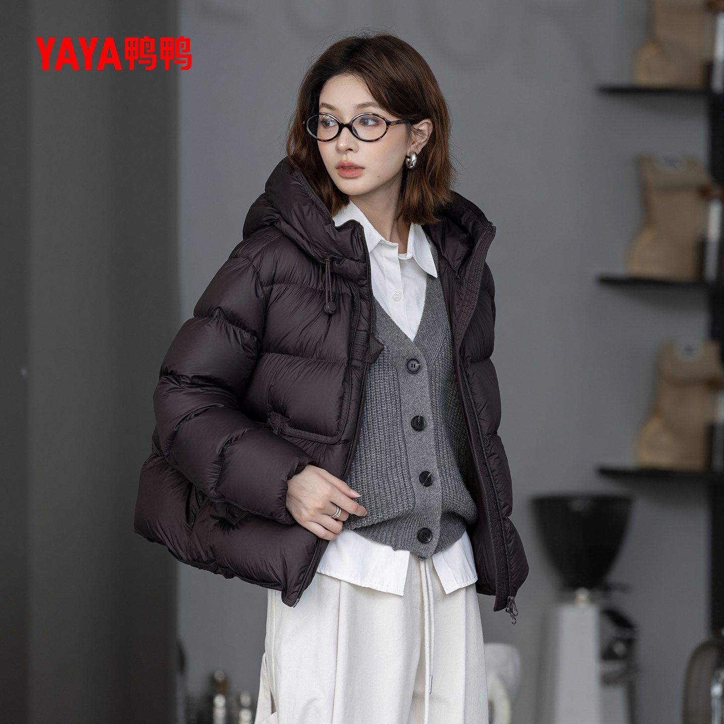 📚 YAYA鸭鸭官方新国标90绒2025秋冬厚款女短款小个子百搭泡芙羽绒服